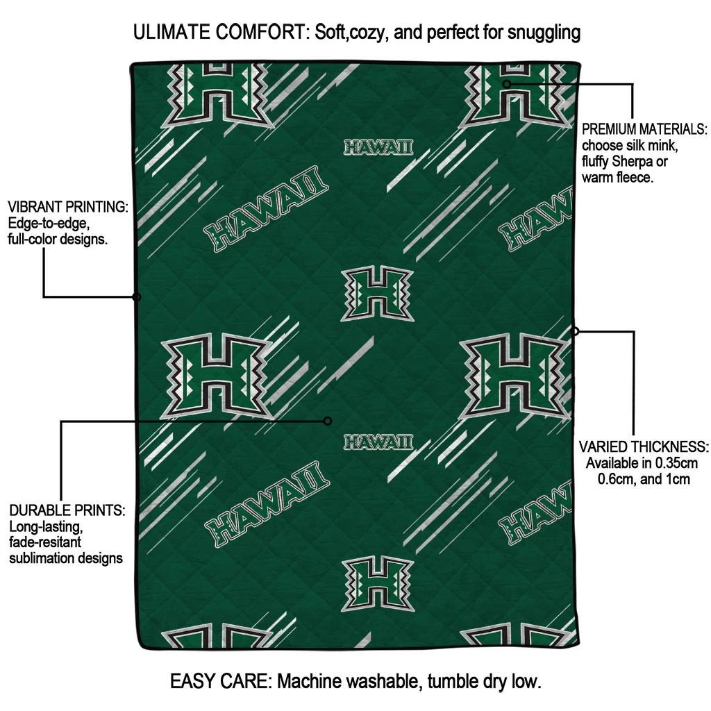 The Hawaii Rainbow Warriors Sketch Lines Green Quilt Blanket is more than a blanket—it’s everyday comfort, thoughtfully made. Crafted from premium quilting fabric with a soft microfiber touch, it offers a smooth hand-feel and lasting coziness. Layered quilting with a cotton-filled core provides adaptable warmth across seasons while maintaining a clean, tailored look on your bed or sofa.