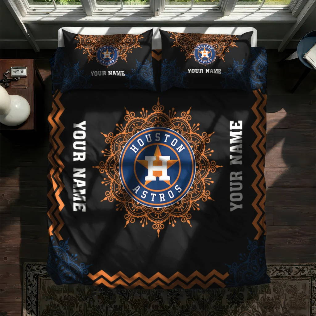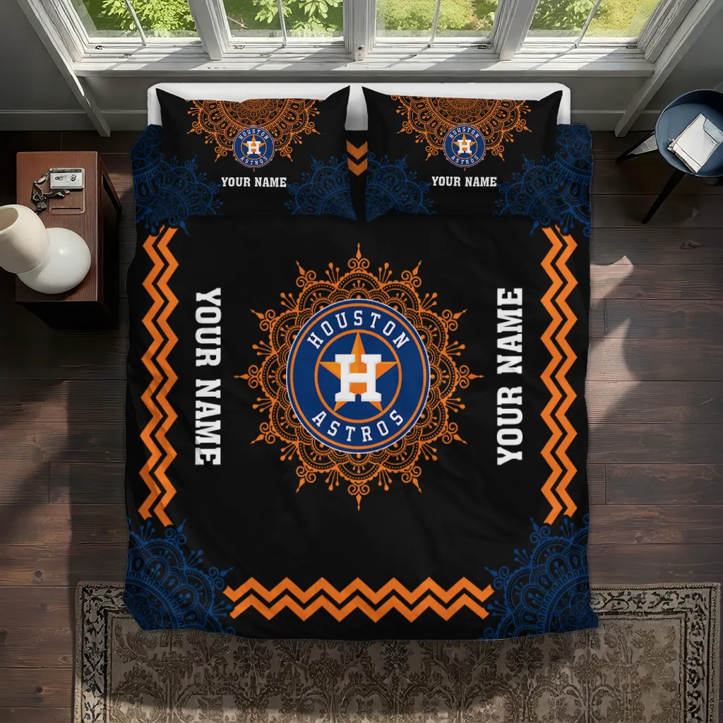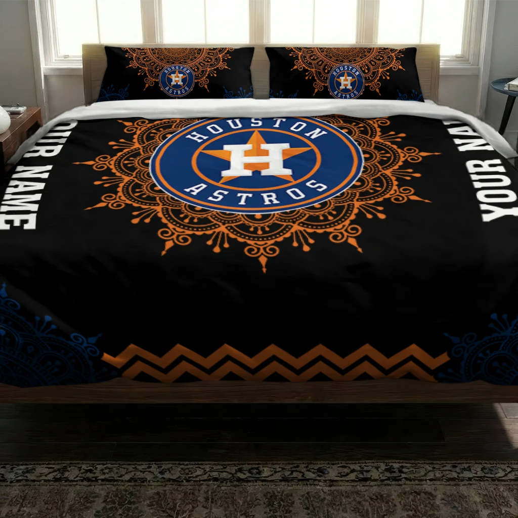 Houston Astros Bedding Set – Custom Mandala Lacework Black Orange