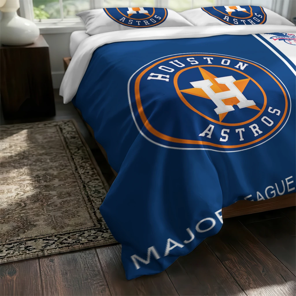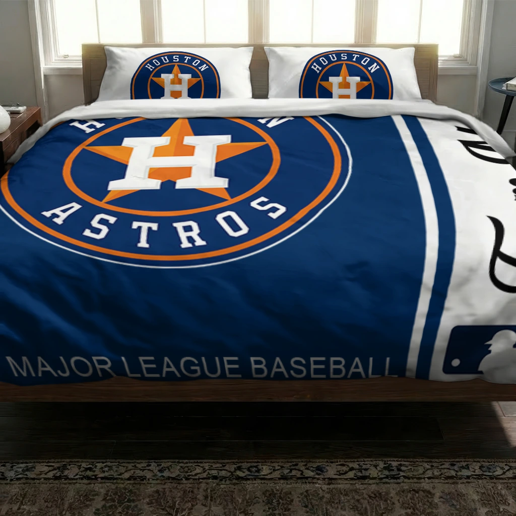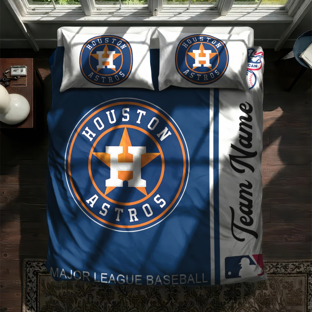 Houston Astros Bedding Set – Customized MLB Logo Blue Orange