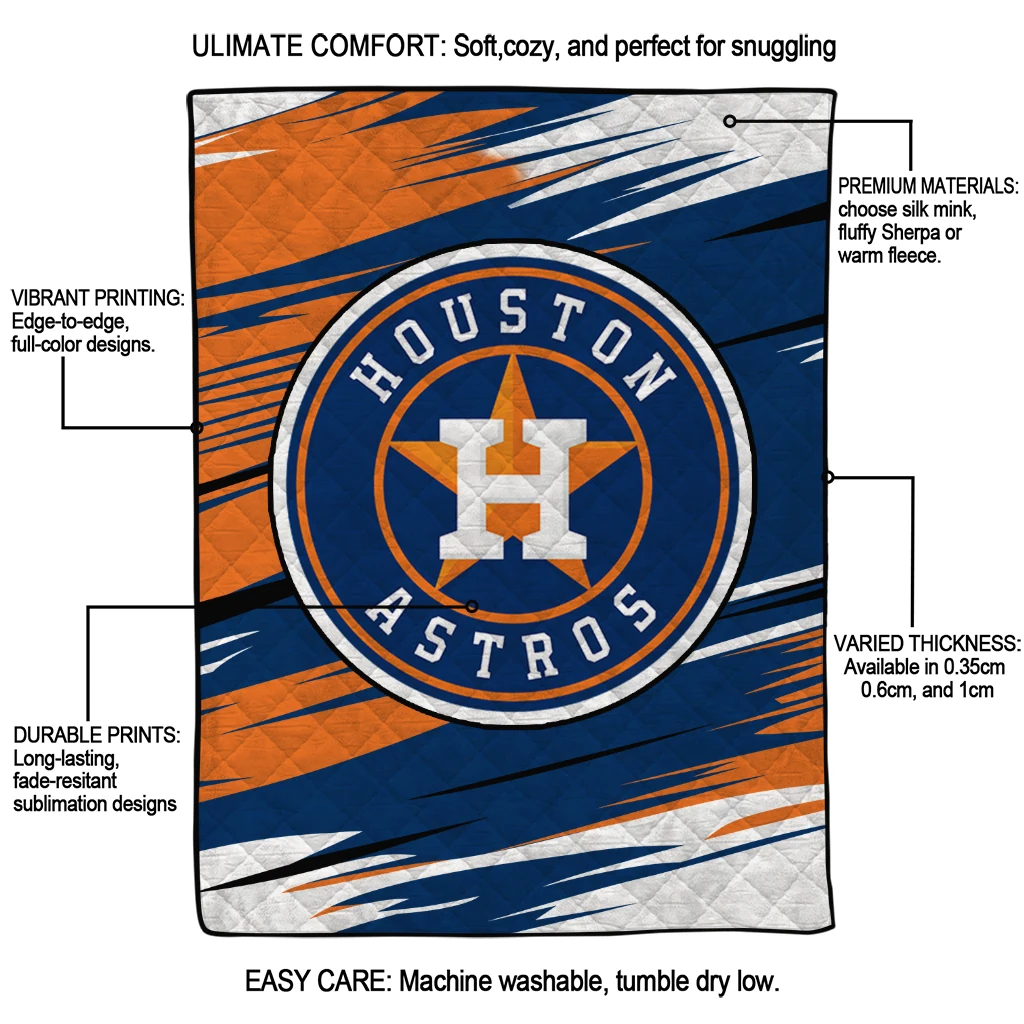 Wrap yourself in warmth and pride with the Houston Astros Wild Lines Blue White Quilt Blanket from the Houston Astros Blankets collection at Yes That Blanket. Made from 100% premium quilting-weight polyester blended with a touch of microfiber, this quilt offers a smooth, soft finish you’ll love. Choose between two quilting styles—Stipple or Diagonal—and enjoy the comfort of a cotton-filled layer inside that adds extra coziness for every season. The border is available in classic black or white, giving your design a clean, timeless edge.