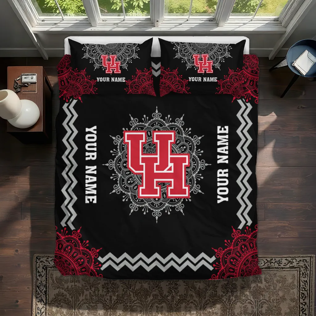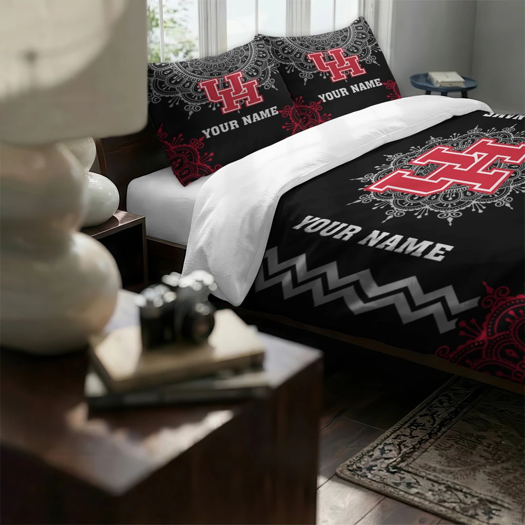 Houston Cougars Bedding Set – Custom Mandala Lacework Black Red