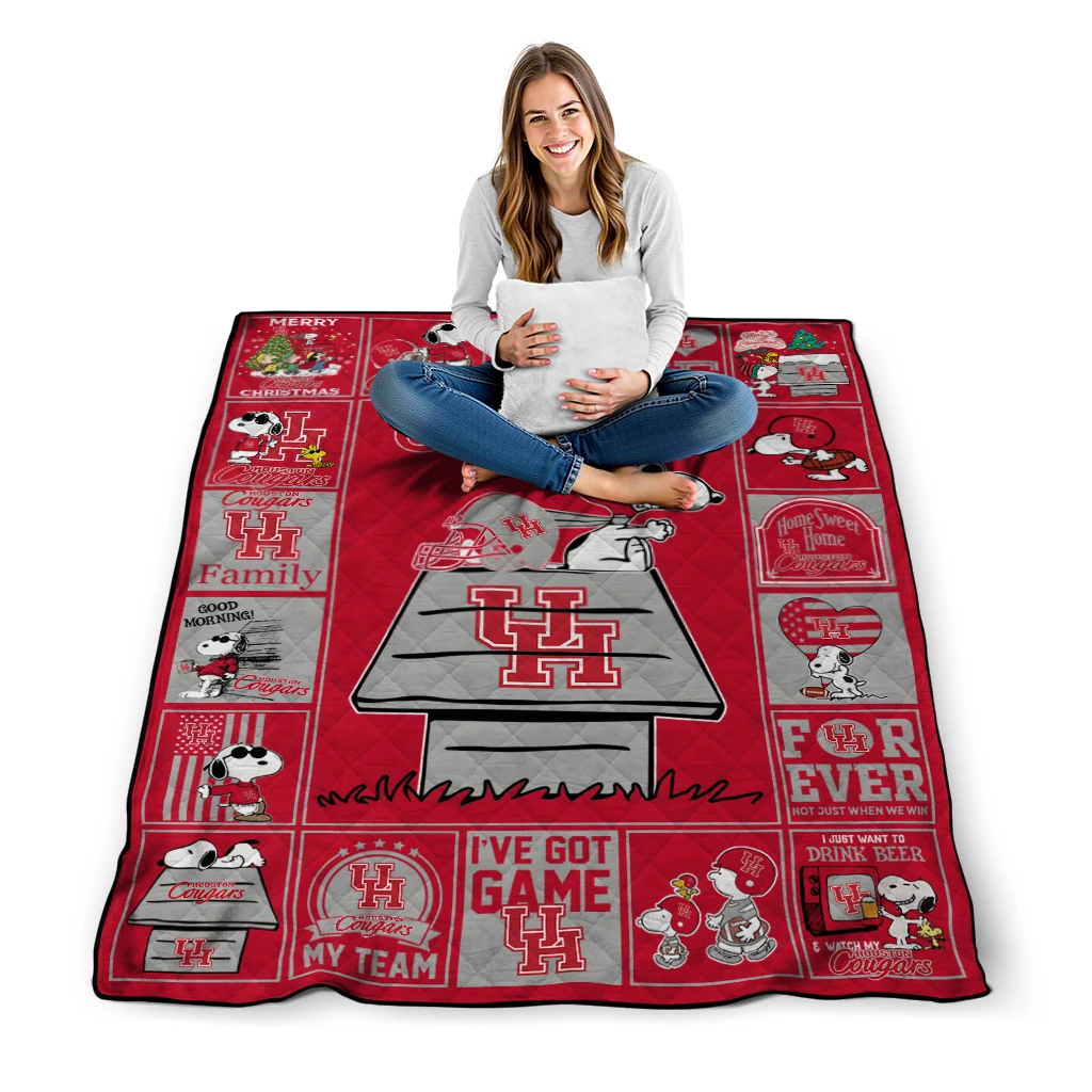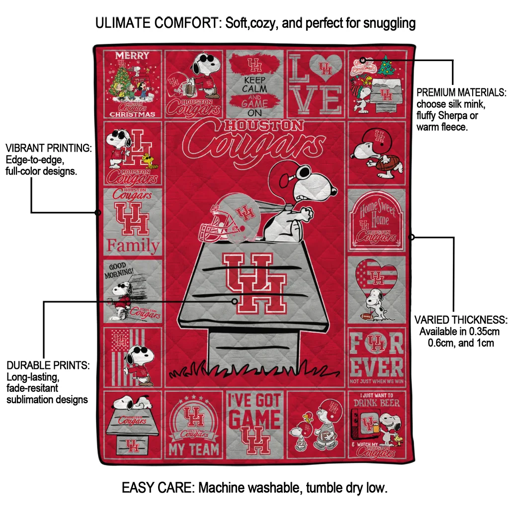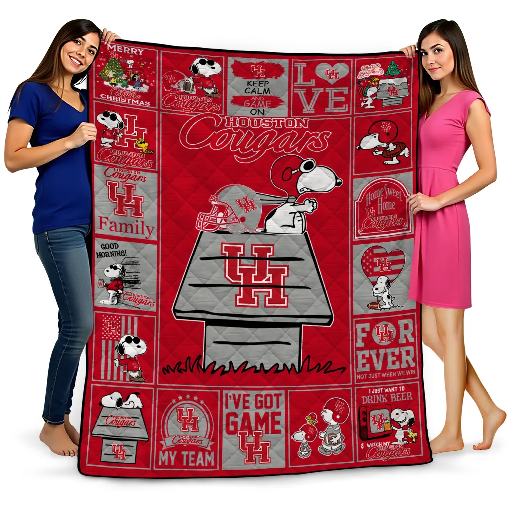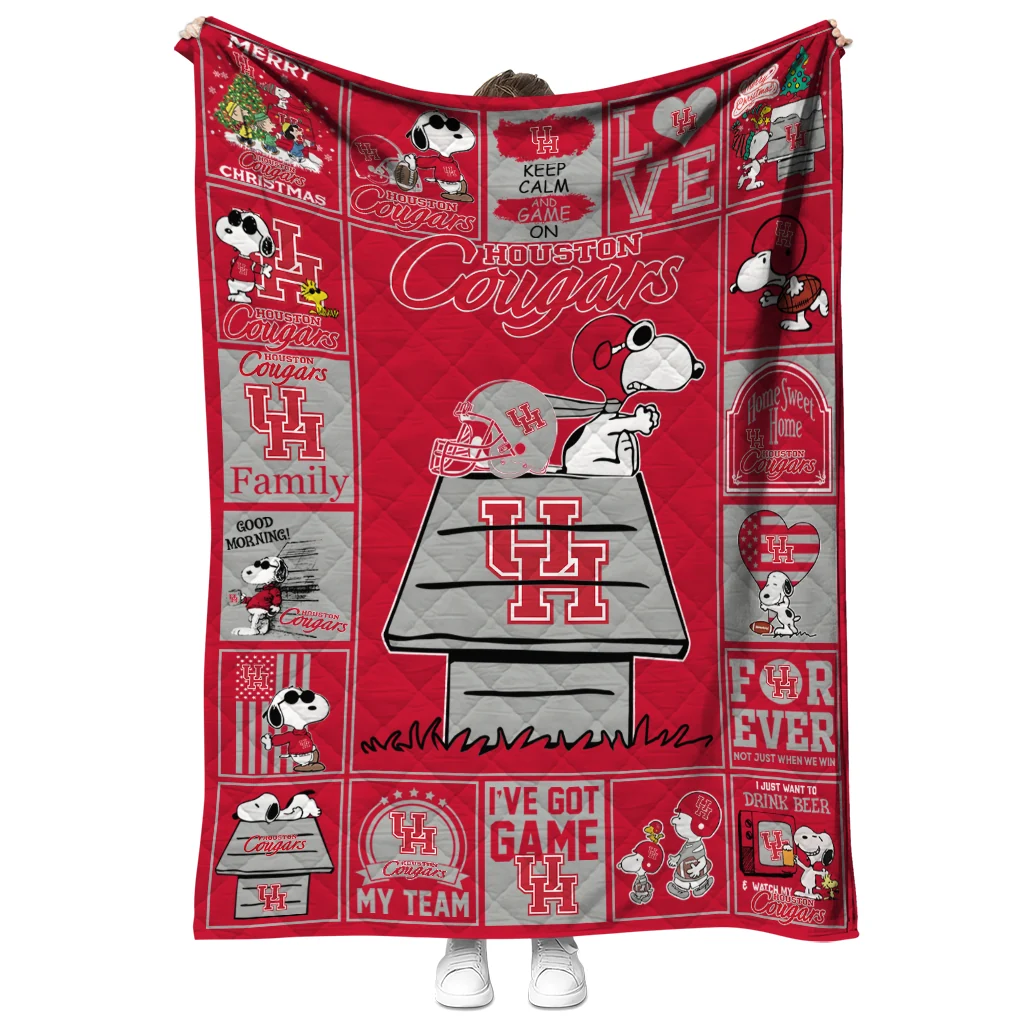 Houston Cougars Snoopy Love Red Quilt Blanket