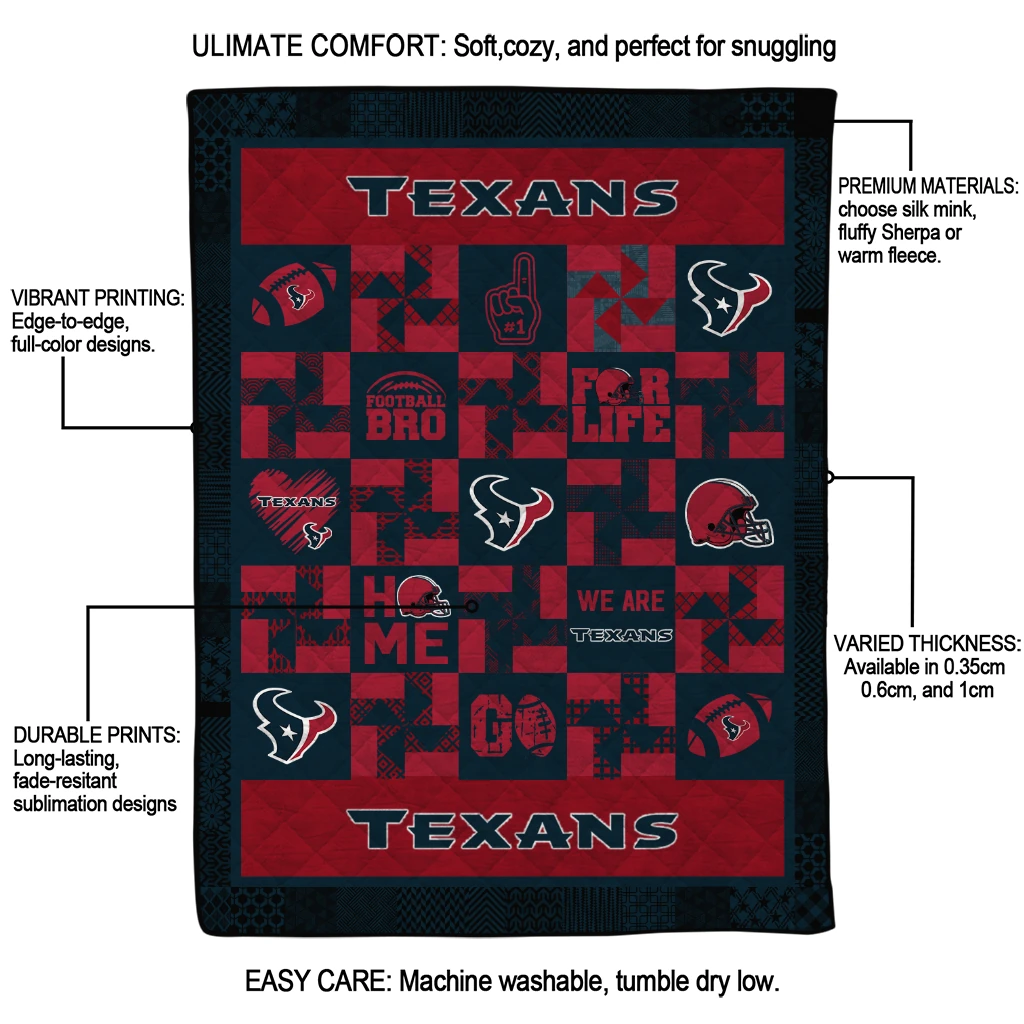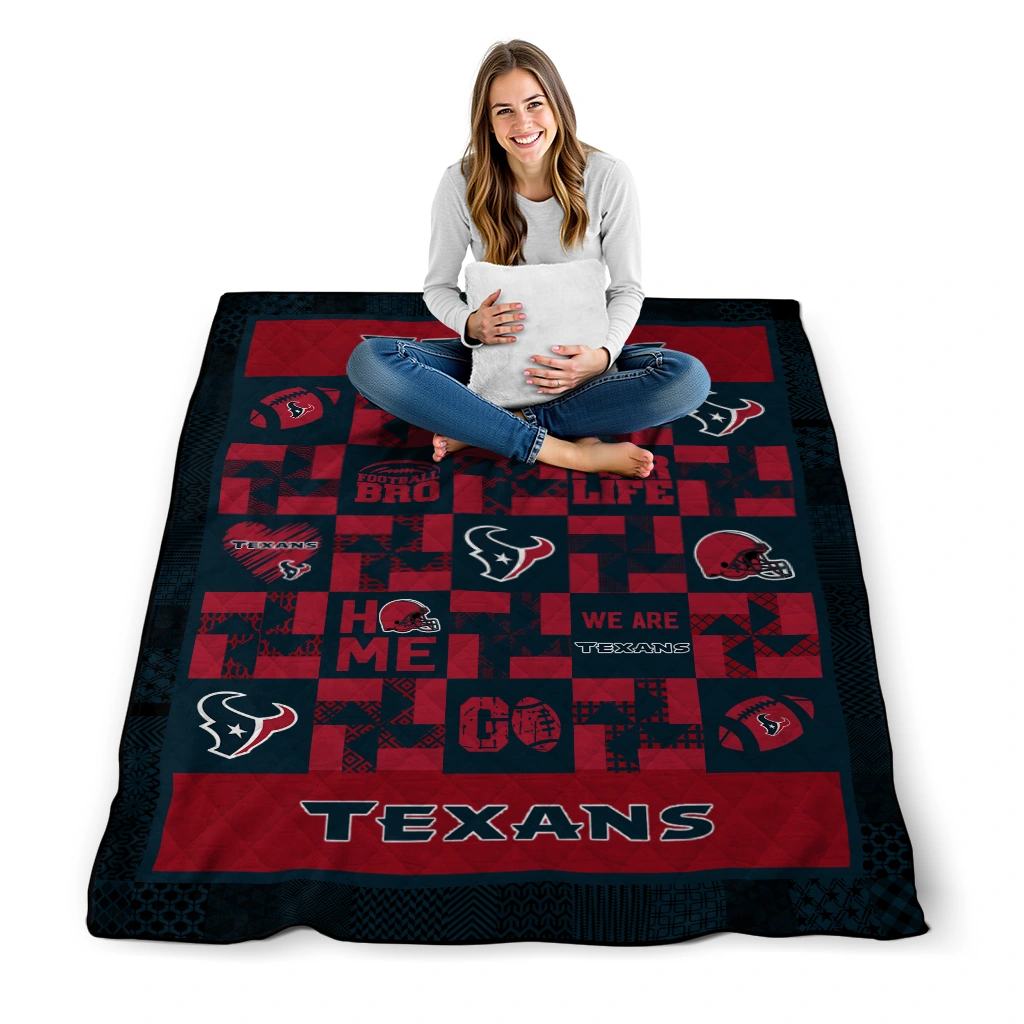 The Houston Texans Helmet Heart Blue Quilt Blanket is more than a blanket—it’s everyday comfort, thoughtfully made. Crafted from premium quilting fabric with a soft microfiber touch, it offers a smooth hand-feel and lasting coziness. Layered quilting with a cotton-filled core provides adaptable warmth across seasons while maintaining a clean, tailored look on your bed or sofa.