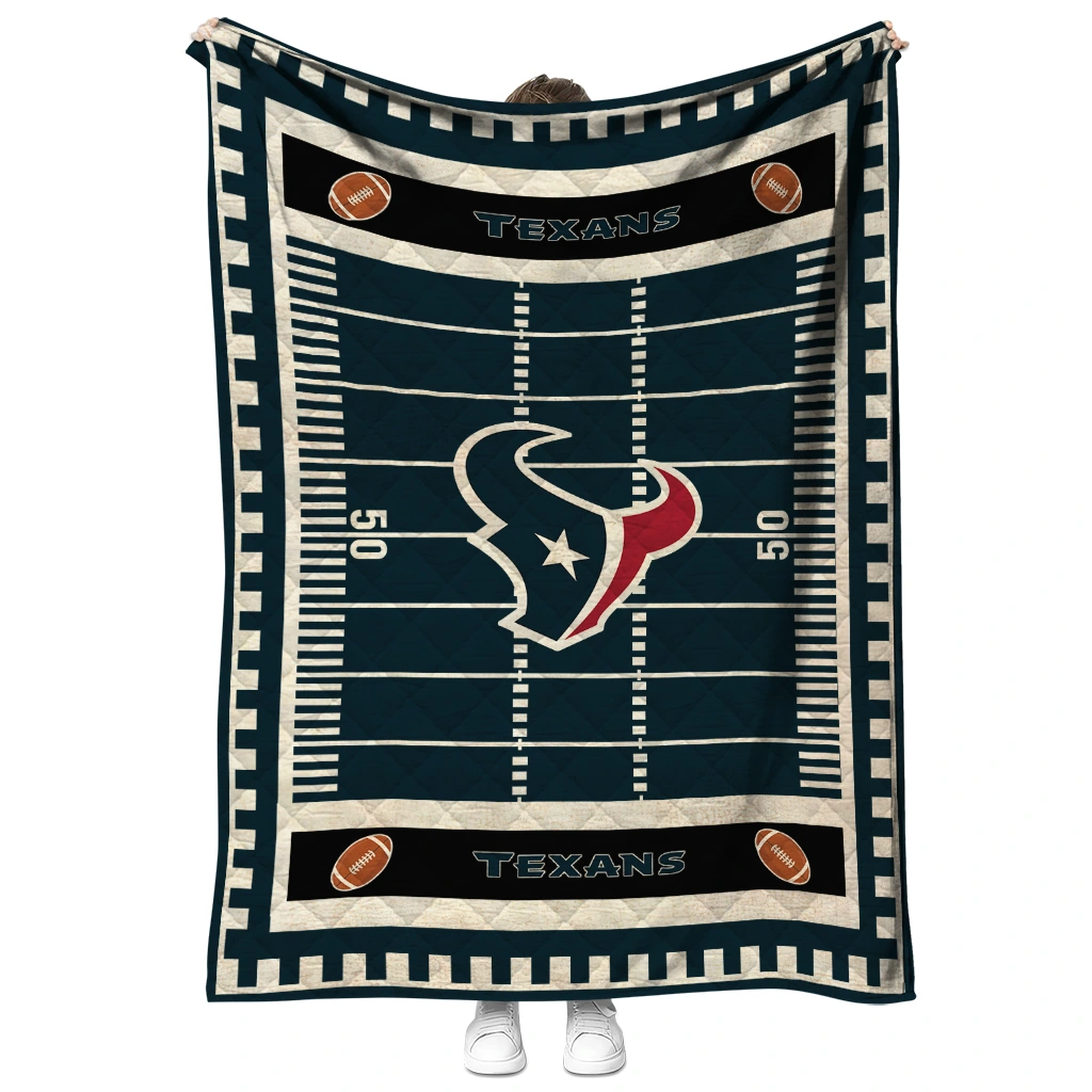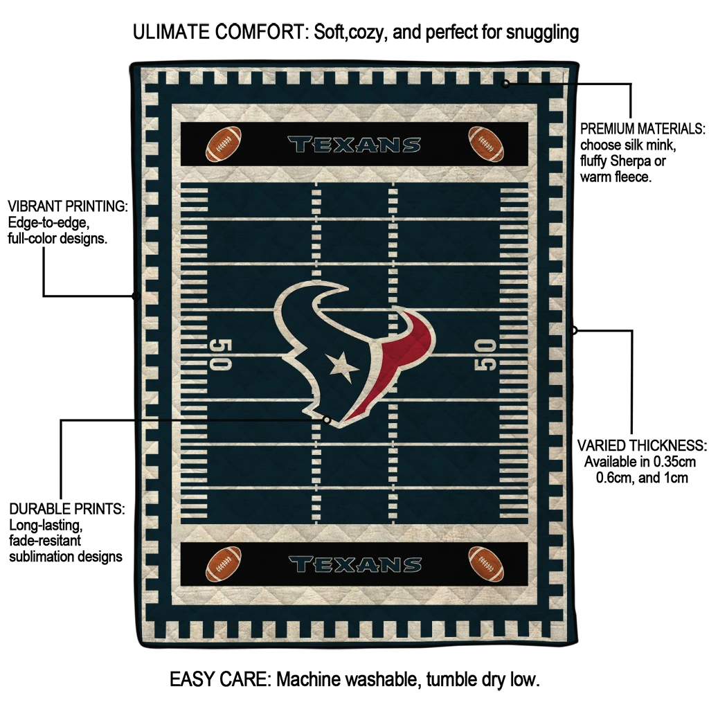 Wrap yourself in warmth and pride with the Houston Texans Mickey Player Blue Quilt Blanket from the Houston Texans Blankets collection at Yes That Blanket. Made from 100% premium quilting-weight polyester blended with a touch of microfiber, this quilt offers a smooth, soft finish you’ll love. Choose between two quilting styles—Stipple or Diagonal—and enjoy the comfort of a cotton-filled layer inside that adds extra coziness for every season. The border is available in classic black or white, giving your design a clean, timeless edge.