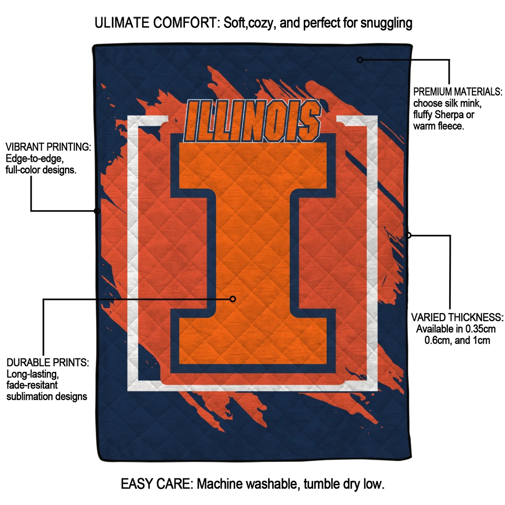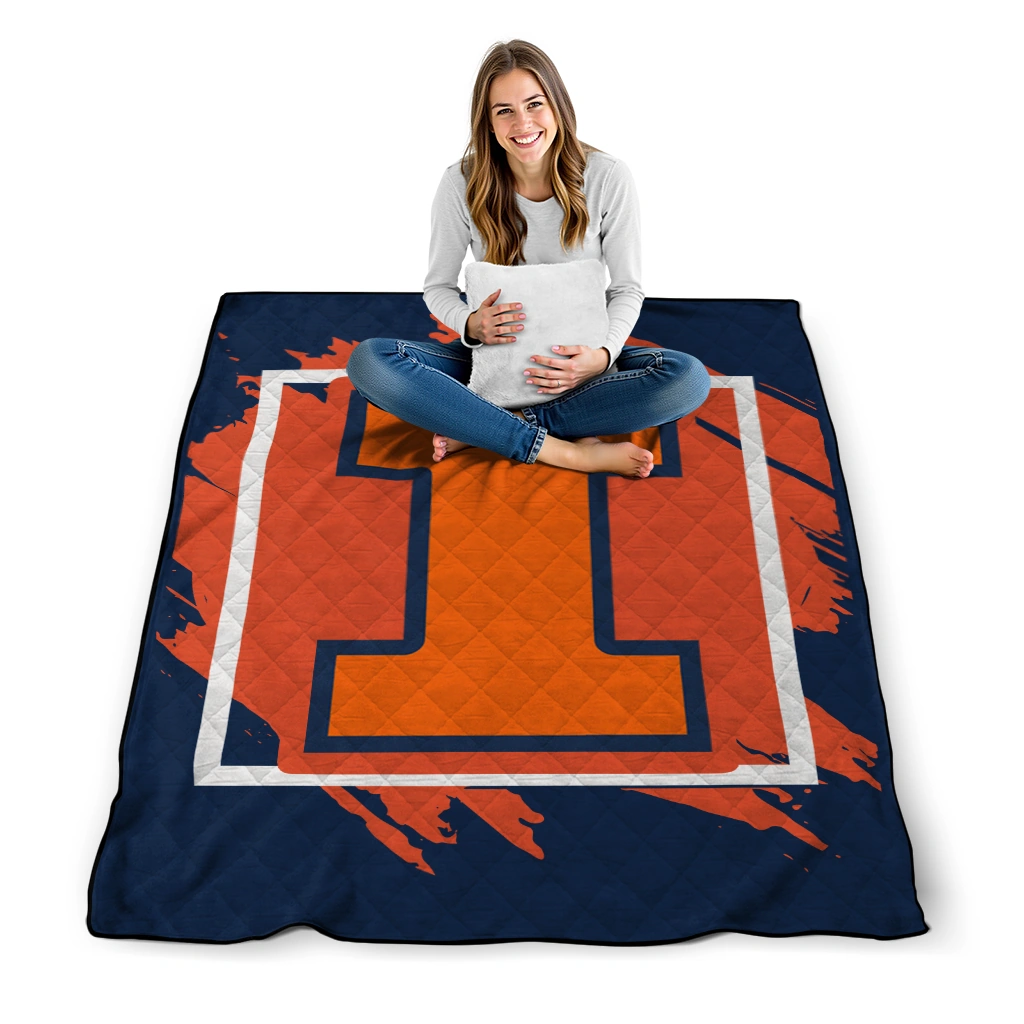 Illinois Fighting Illini Block Border Blue Quilt Blanket