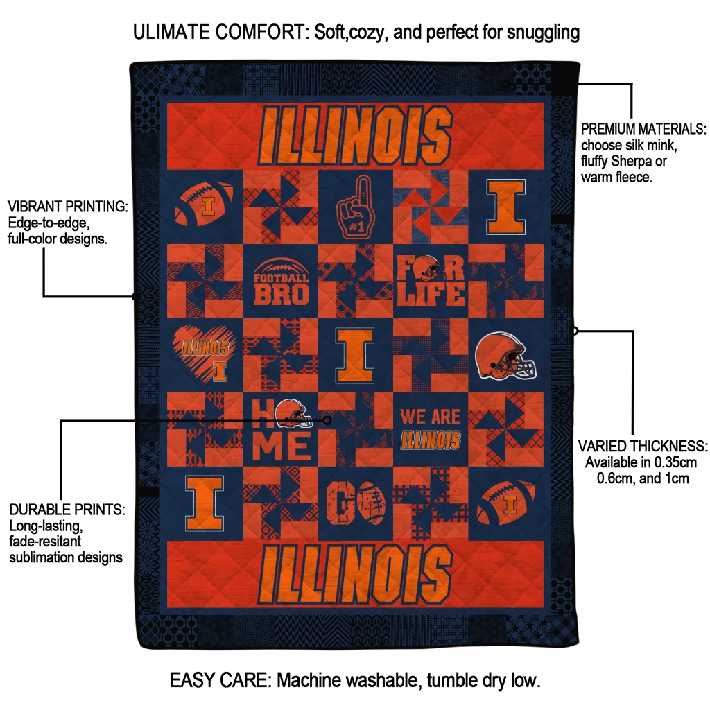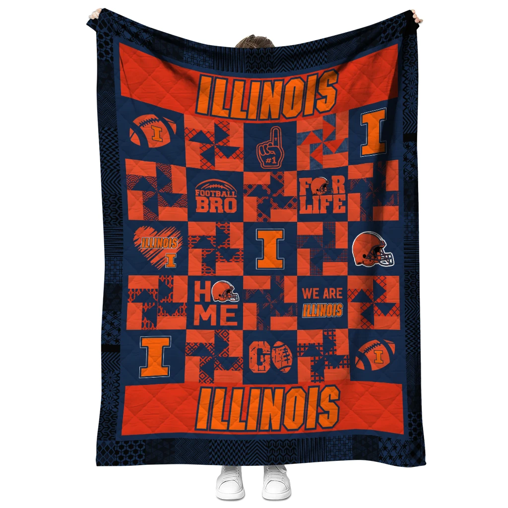 Wrap yourself in warmth and pride with the Illinois Fighting Illini Helmet Heart Blue Quilt Blanket from the Illinois Fighting Illini Blankets collection at Yes That Blanket. Made from 100% premium quilting-weight polyester blended with a touch of microfiber, this quilt offers a smooth, soft finish you’ll love. Choose between two quilting styles—Stipple or Diagonal—and enjoy the comfort of a cotton-filled layer inside that adds extra coziness for every season. The border is available in classic black or white, giving your design a clean, timeless edge.