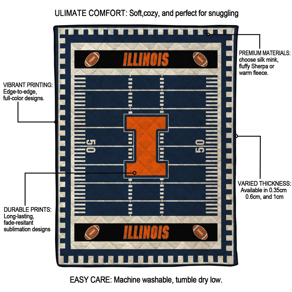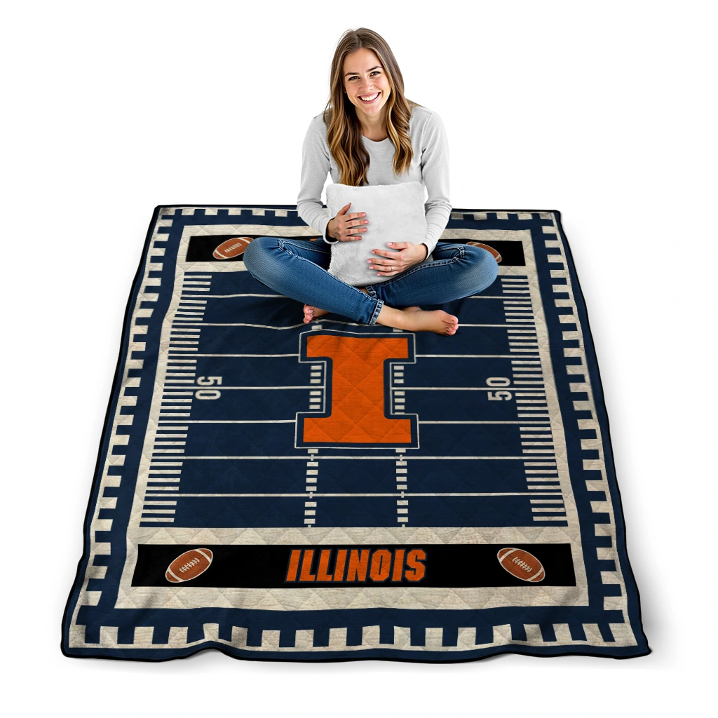 Illinois Fighting Illini Mickey Player Blue Quilt Blanket