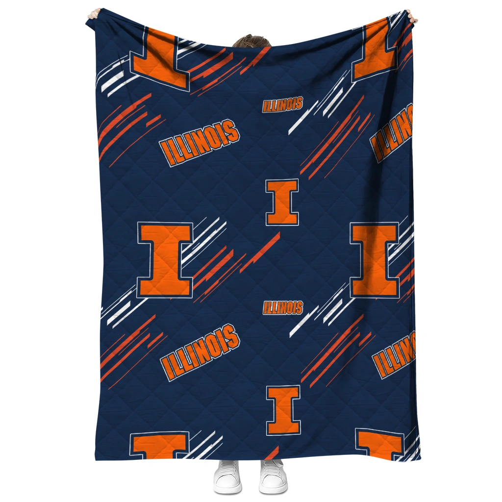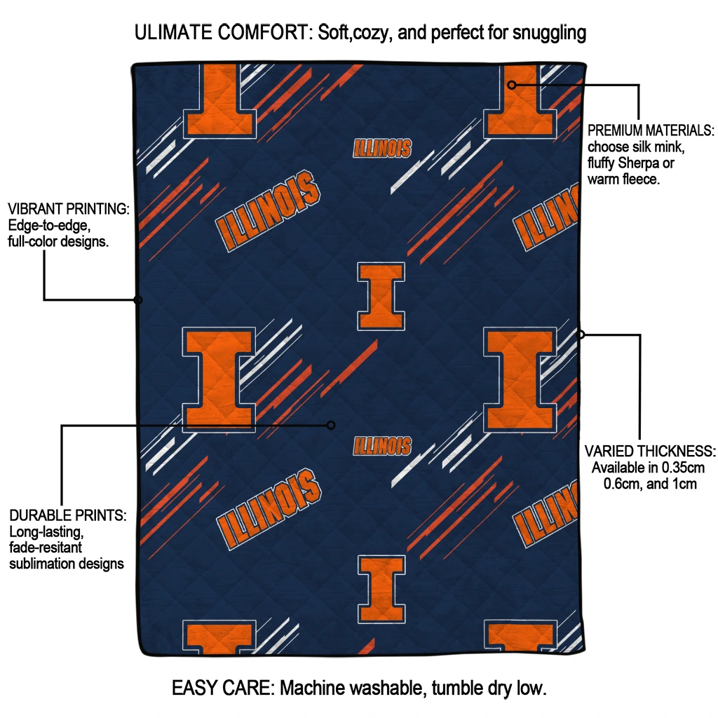 Wrap yourself in warmth and pride with the Illinois Fighting Illini Sketch Lines Blue Quilt Blanket from the Illinois Fighting Illini Blankets collection at Yes That Blanket. Made from 100% premium quilting-weight polyester blended with a touch of microfiber, this quilt offers a smooth, soft finish you’ll love. Choose between two quilting styles—Stipple or Diagonal—and enjoy the comfort of a cotton-filled layer inside that adds extra coziness for every season. The border is available in classic black or white, giving your design a clean, timeless edge.