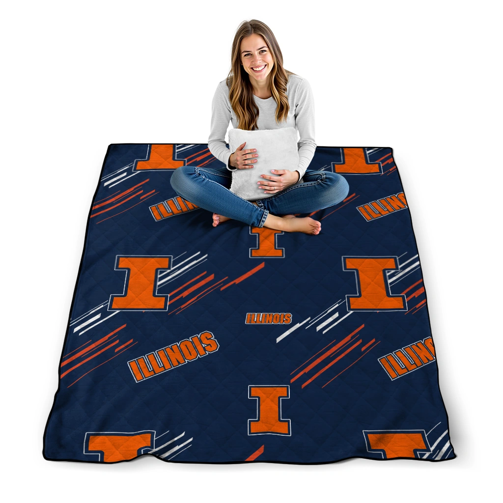 The Illinois Fighting Illini Sketch Lines Blue Quilt Blanket is more than a blanket—it’s everyday comfort, thoughtfully made. Crafted from premium quilting fabric with a soft microfiber touch, it offers a smooth hand-feel and lasting coziness. Layered quilting with a cotton-filled core provides adaptable warmth across seasons while maintaining a clean, tailored look on your bed or sofa.