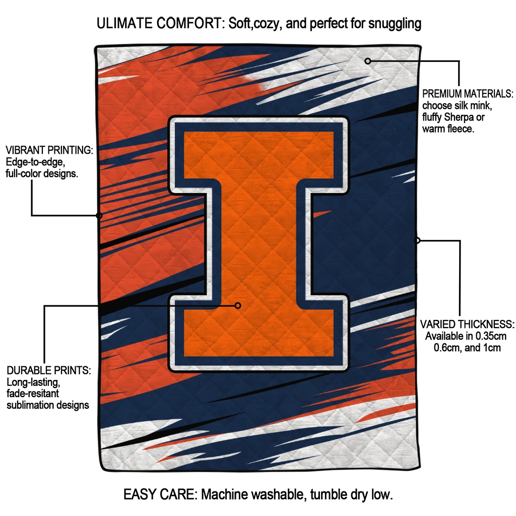Wrap yourself in warmth and pride with the Illinois Fighting Illini Wild Lines Blue White Quilt Blanket from the Illinois Fighting Illini Blankets collection at Yes That Blanket. Made from 100% premium quilting-weight polyester blended with a touch of microfiber, this quilt offers a smooth, soft finish you’ll love. Choose between two quilting styles—Stipple or Diagonal—and enjoy the comfort of a cotton-filled layer inside that adds extra coziness for every season. The border is available in classic black or white, giving your design a clean, timeless edge.