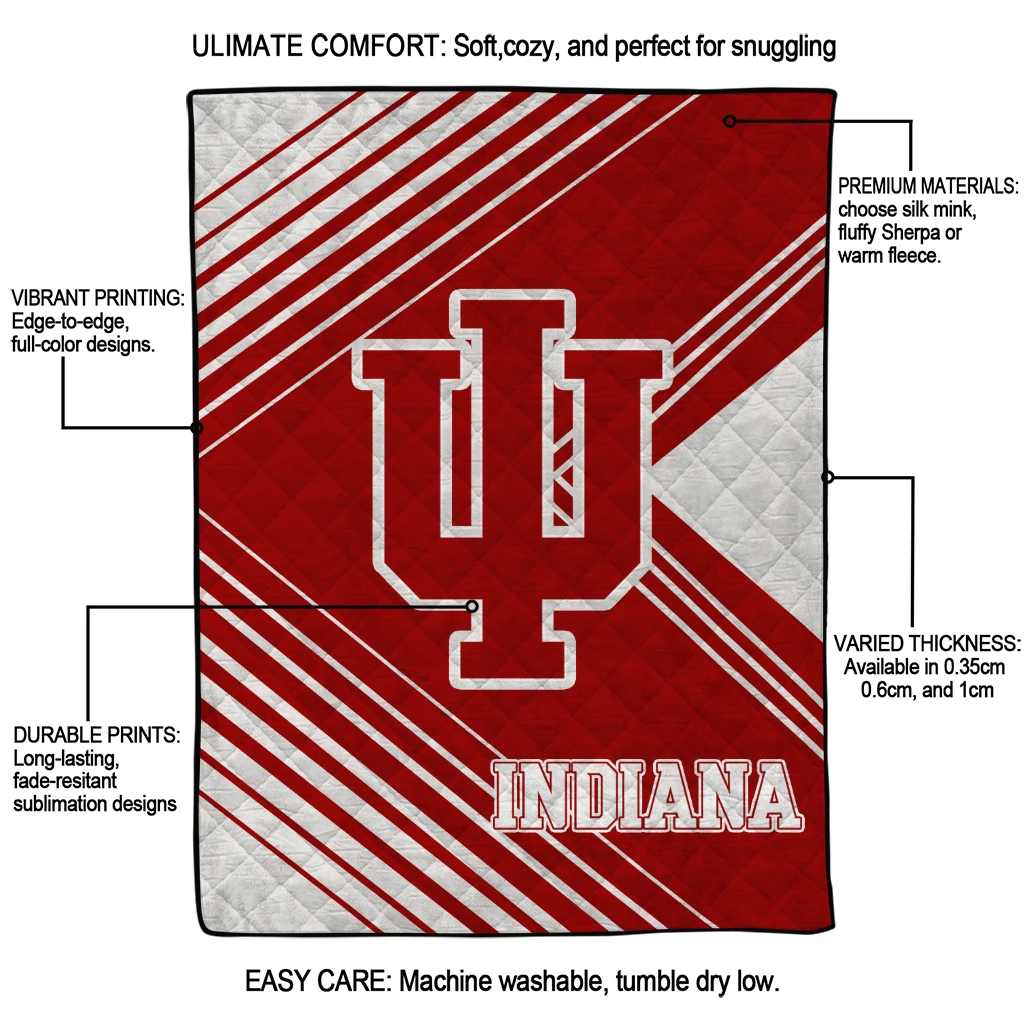 Wrap yourself in warmth and pride with the Indiana Hoosiers Arrow Layers Red Quilt Blanket from the Indiana Hoosiers Blankets collection at Yes That Blanket. Made from 100% premium quilting-weight polyester blended with a touch of microfiber, this quilt offers a smooth, soft finish you’ll love. Choose between two quilting styles—Stipple or Diagonal—and enjoy the comfort of a cotton-filled layer inside that adds extra coziness for every season. The border is available in classic black or white, giving your design a clean, timeless edge.
