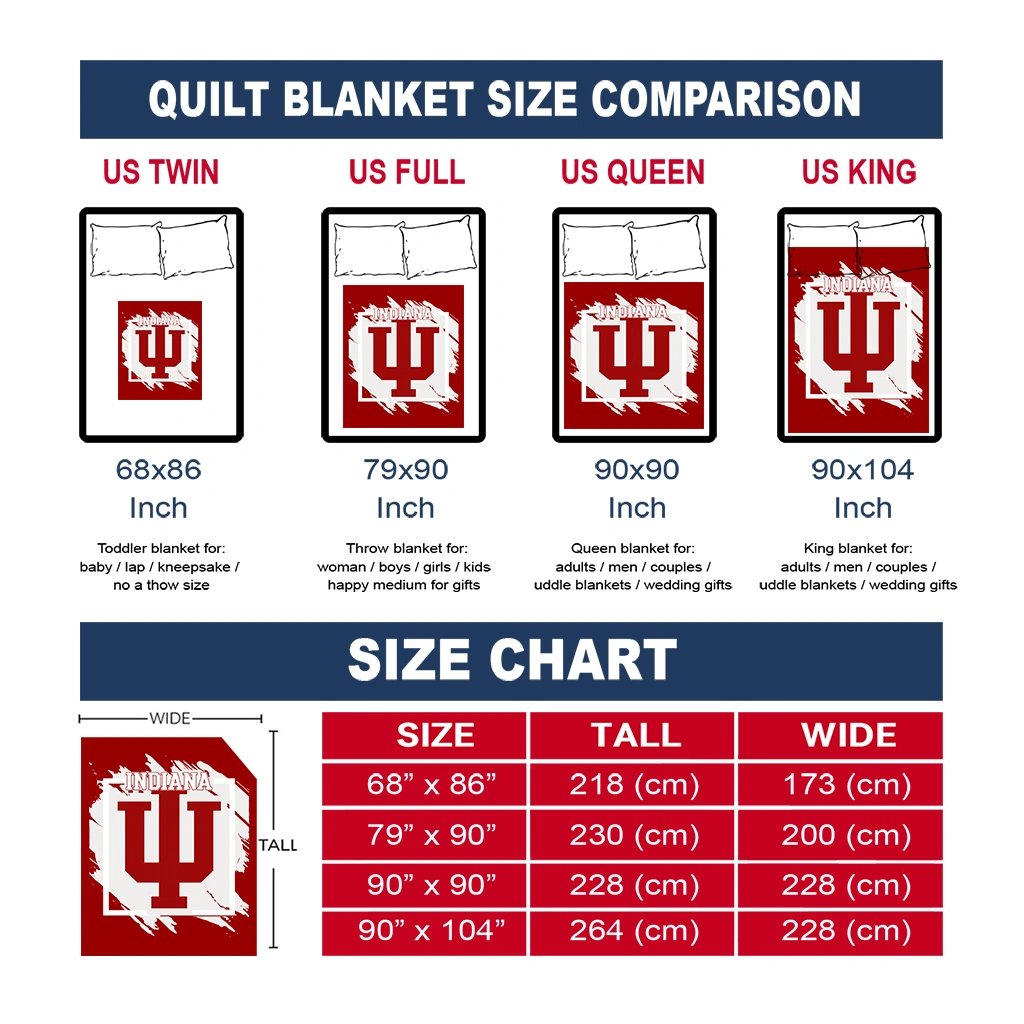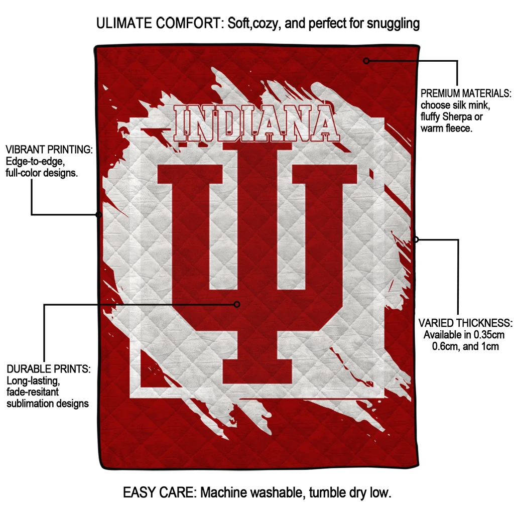 Wrap yourself in warmth and pride with the Indiana Hoosiers Block Border Red Quilt Blanket from the Indiana Hoosiers Blankets collection at Yes That Blanket. Made from 100% premium quilting-weight polyester blended with a touch of microfiber, this quilt offers a smooth, soft finish you’ll love. Choose between two quilting styles—Stipple or Diagonal—and enjoy the comfort of a cotton-filled layer inside that adds extra coziness for every season. The border is available in classic black or white, giving your design a clean, timeless edge.