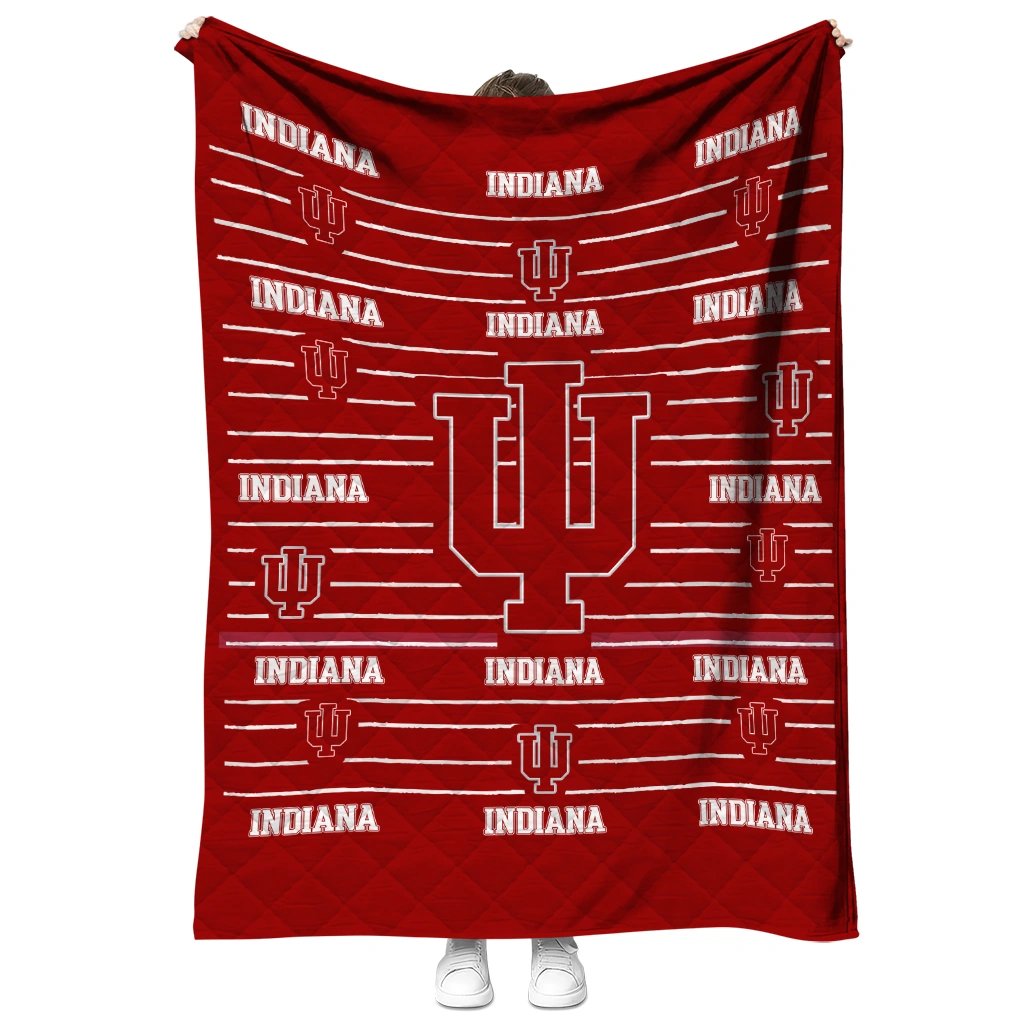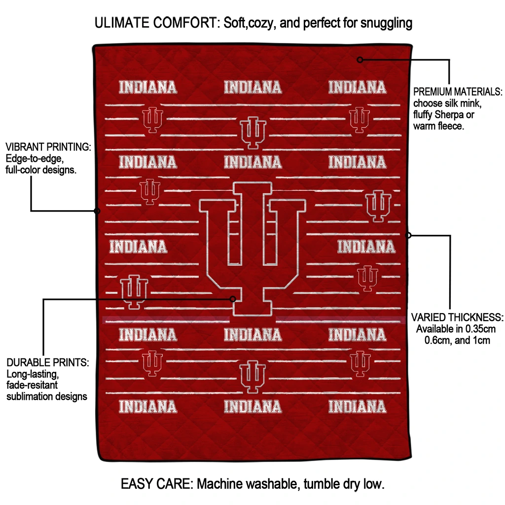 Indiana Hoosiers Handdrawn Stripes Red Quilt Blanket