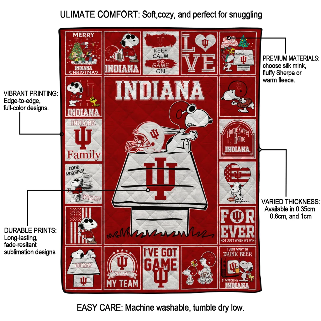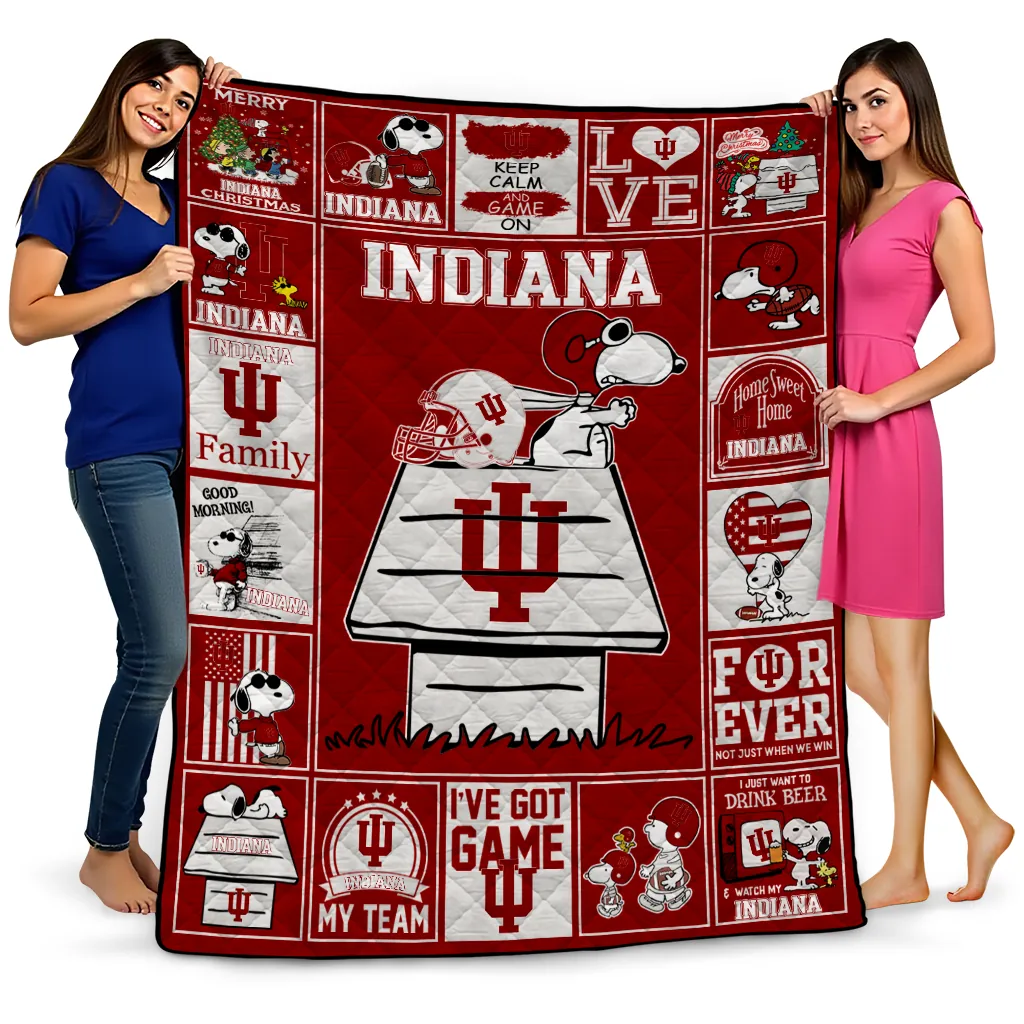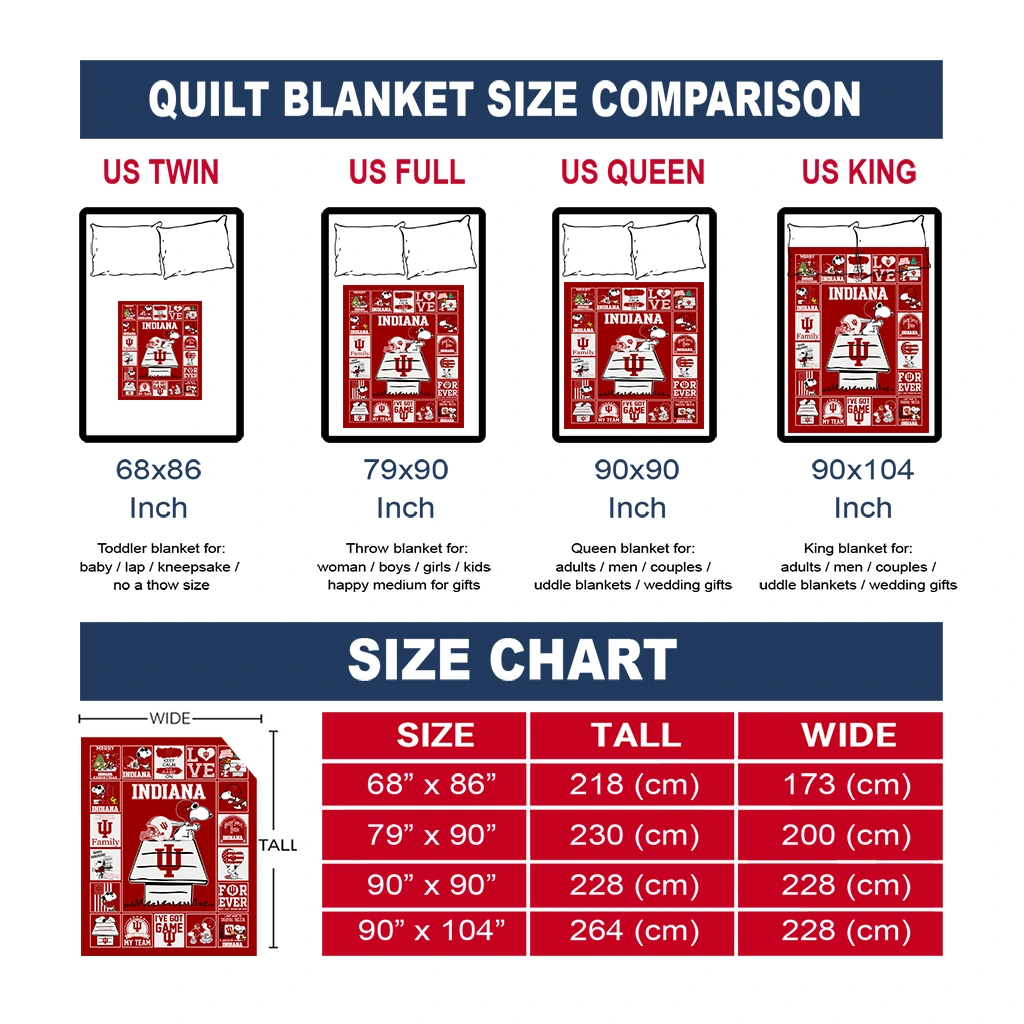 Wrap yourself in warmth and pride with the Indiana Hoosiers Snoopy Love Red Quilt Blanket from the Indiana Hoosiers Blankets collection at Yes That Blanket. Made from 100% premium quilting-weight polyester blended with a touch of microfiber, this quilt offers a smooth, soft finish you’ll love. Choose between two quilting styles—Stipple or Diagonal—and enjoy the comfort of a cotton-filled layer inside that adds extra coziness for every season. The border is available in classic black or white, giving your design a clean, timeless edge.