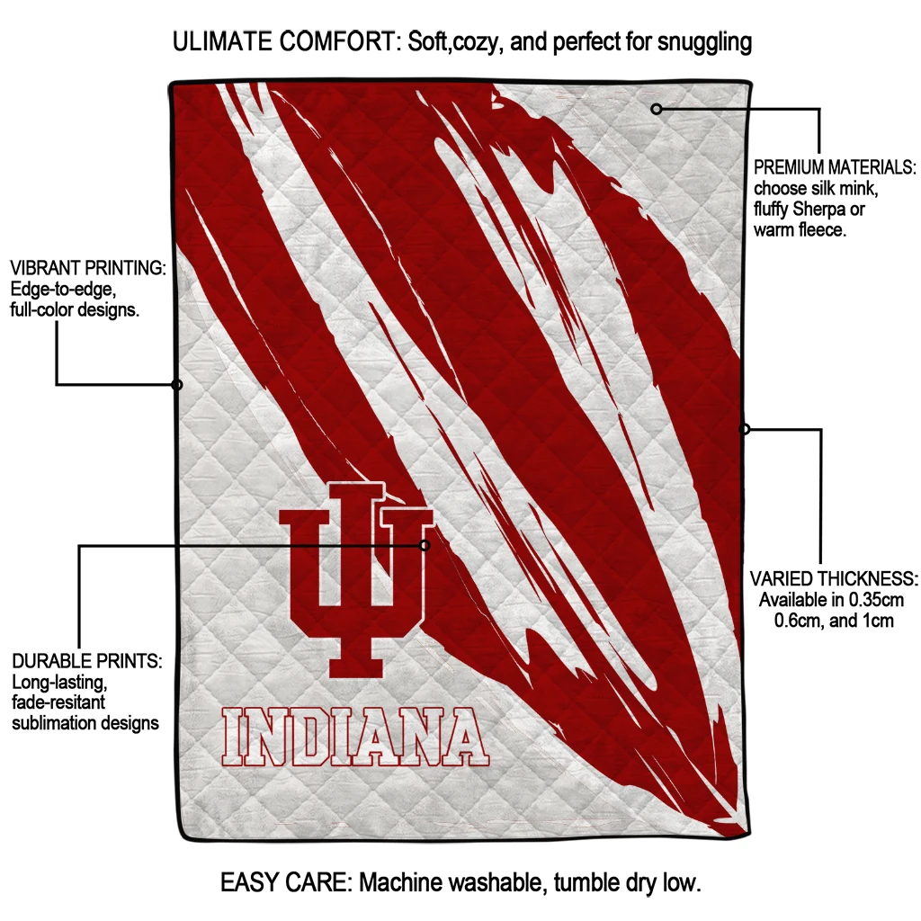 Wrap yourself in warmth and pride with the Indiana Hoosiers Stroke Art Red White Quilt Blanket from the Indiana Hoosiers Blankets collection at Yes That Blanket. Made from 100% premium quilting-weight polyester blended with a touch of microfiber, this quilt offers a smooth, soft finish you’ll love. Choose between two quilting styles—Stipple or Diagonal—and enjoy the comfort of a cotton-filled layer inside that adds extra coziness for every season. The border is available in classic black or white, giving your design a clean, timeless edge.