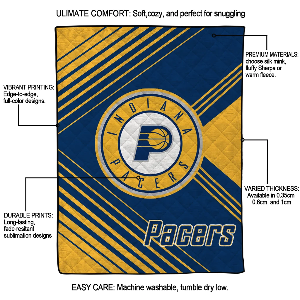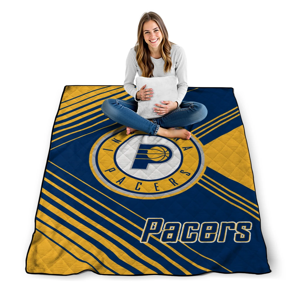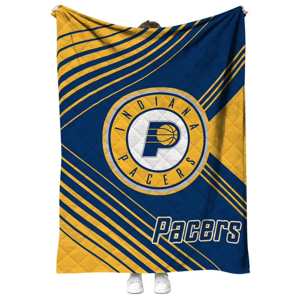 Wrap yourself in warmth and pride with the Indiana Pacers Arrow Layers Blue Quilt Blanket from the Indiana Pacers Blankets collection at Yes That Blanket. Made from 100% premium quilting-weight polyester blended with a touch of microfiber, this quilt offers a smooth, soft finish you’ll love. Choose between two quilting styles—Stipple or Diagonal—and enjoy the comfort of a cotton-filled layer inside that adds extra coziness for every season. The border is available in classic black or white, giving your design a clean, timeless edge.