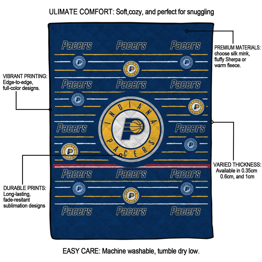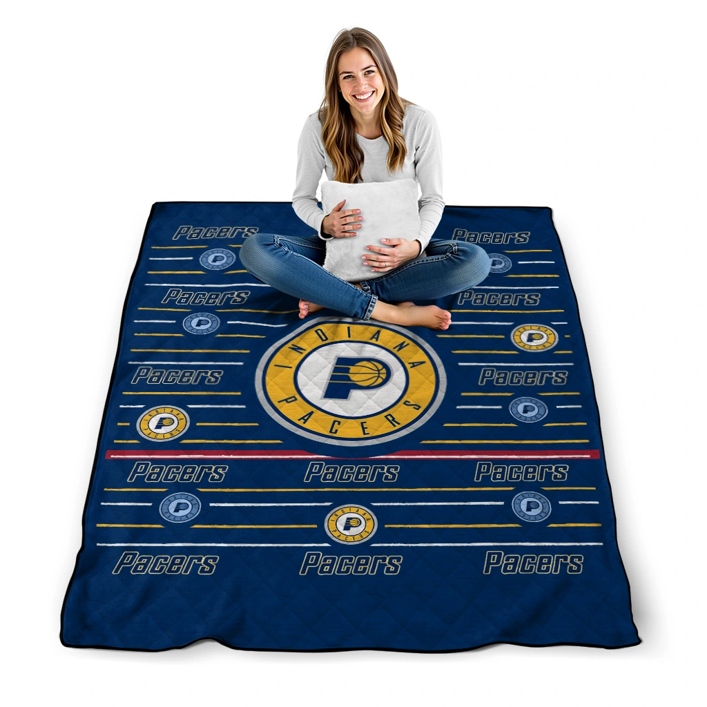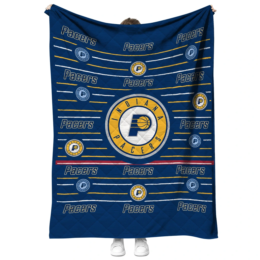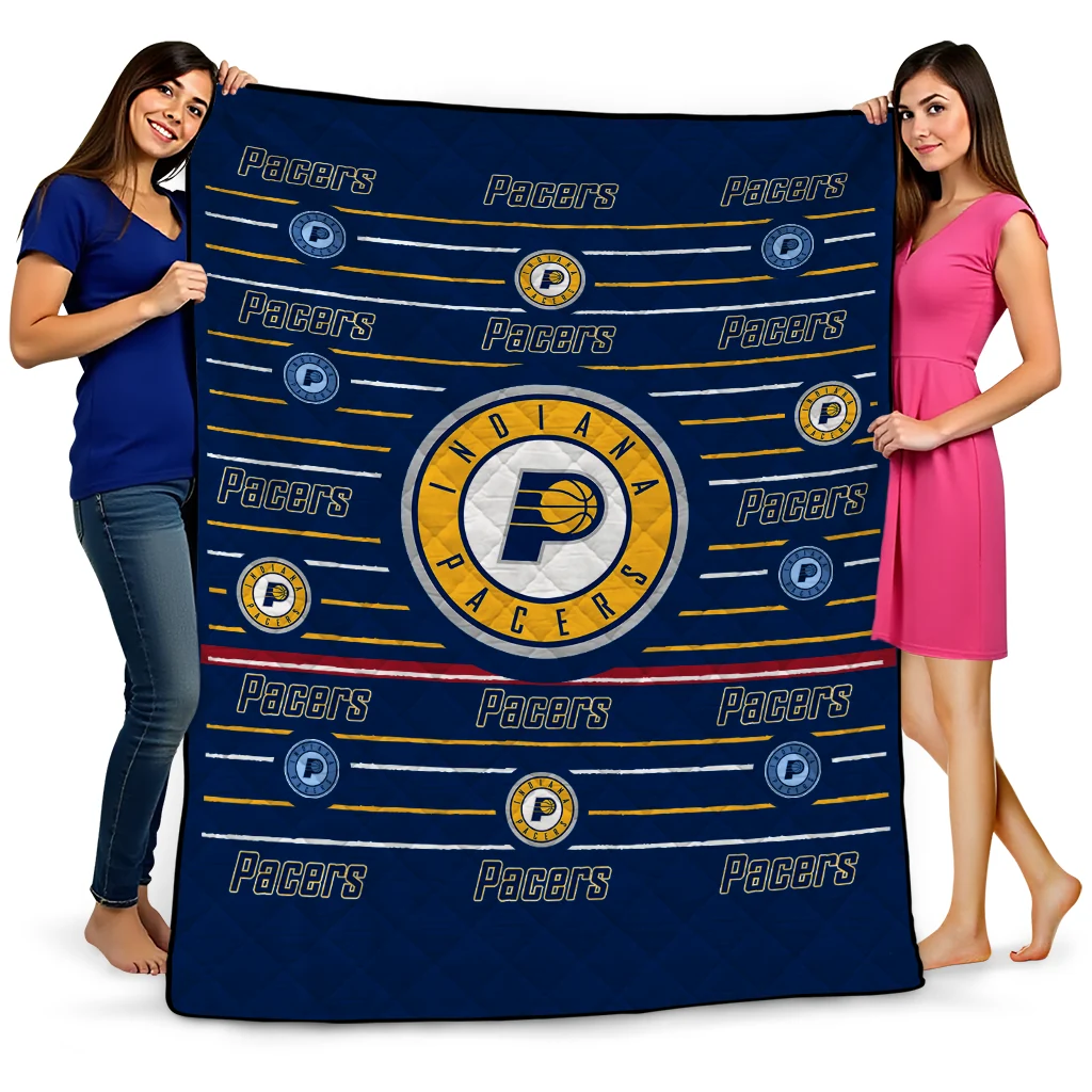 Indiana Pacers Handdrawn Stripes Blue Quilt Blanket
