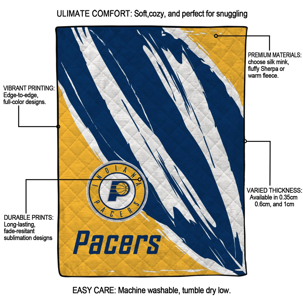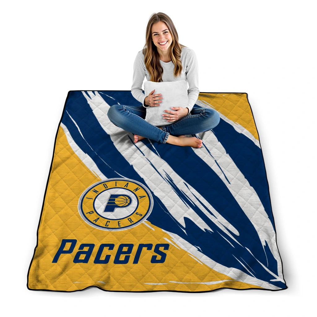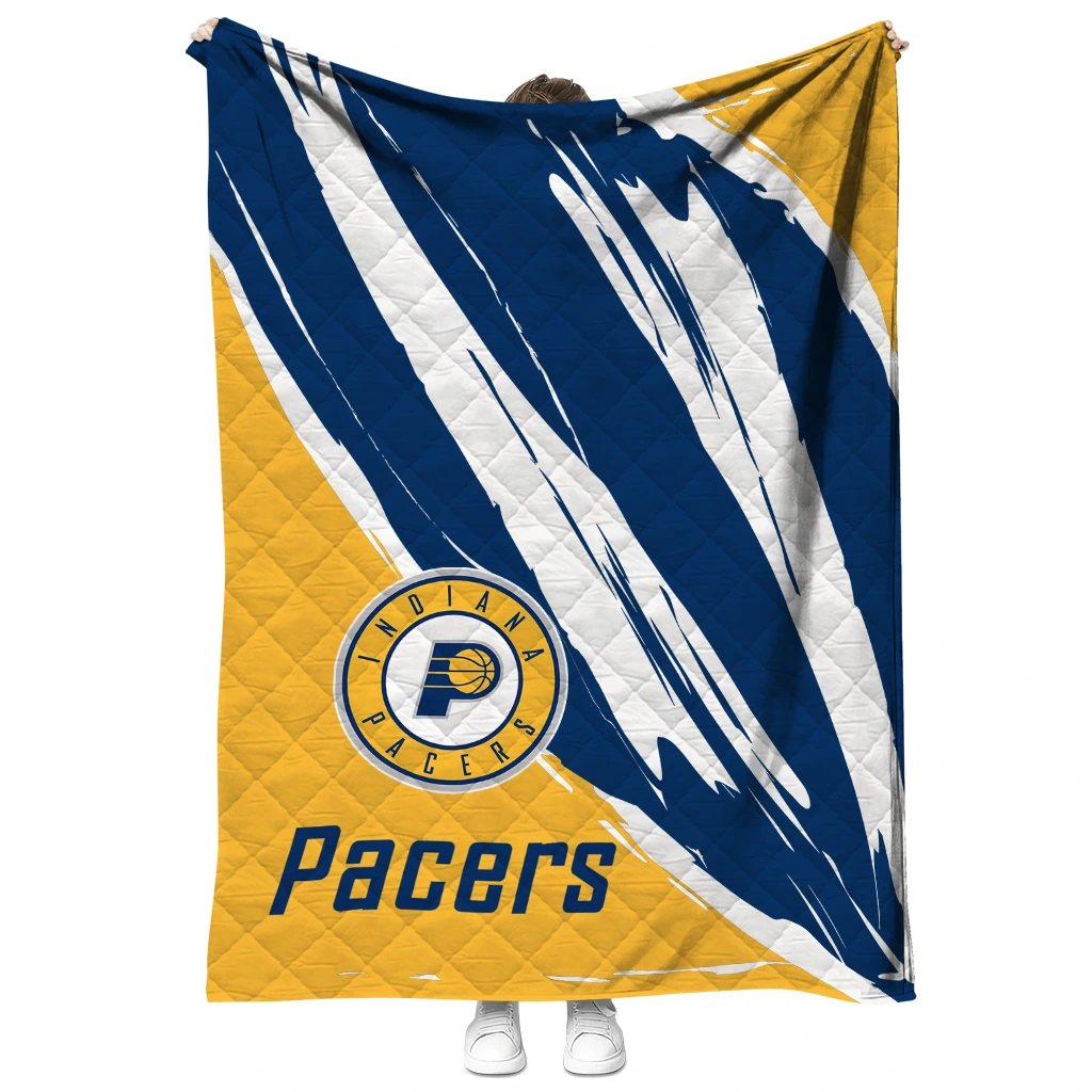 Indiana Pacers Stroke Art Blue White Quilt Blanket