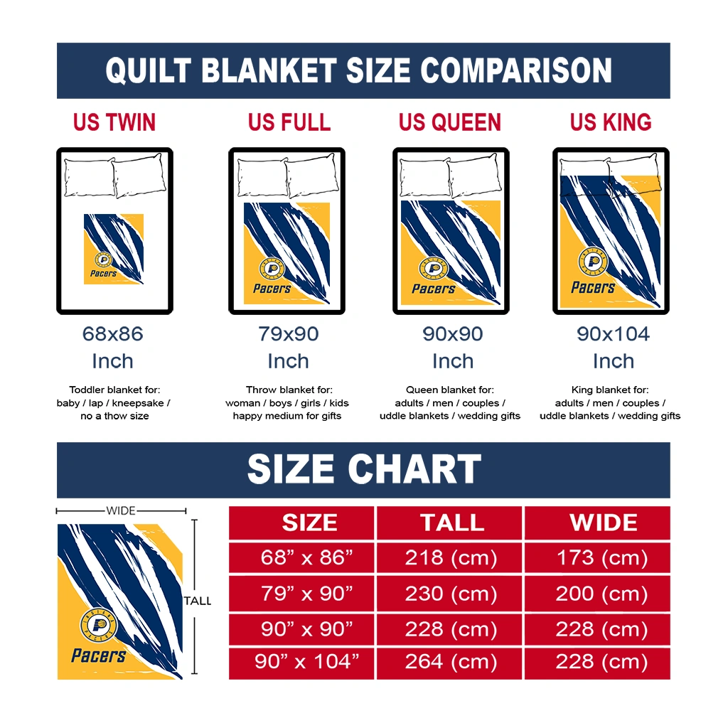 Wrap yourself in warmth and pride with the Indiana Pacers Stroke Art Blue White Quilt Blanket from the Indiana Pacers Blankets collection at Yes That Blanket. Made from 100% premium quilting-weight polyester blended with a touch of microfiber, this quilt offers a smooth, soft finish you’ll love. Choose between two quilting styles—Stipple or Diagonal—and enjoy the comfort of a cotton-filled layer inside that adds extra coziness for every season. The border is available in classic black or white, giving your design a clean, timeless edge.