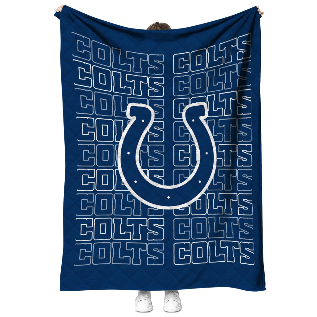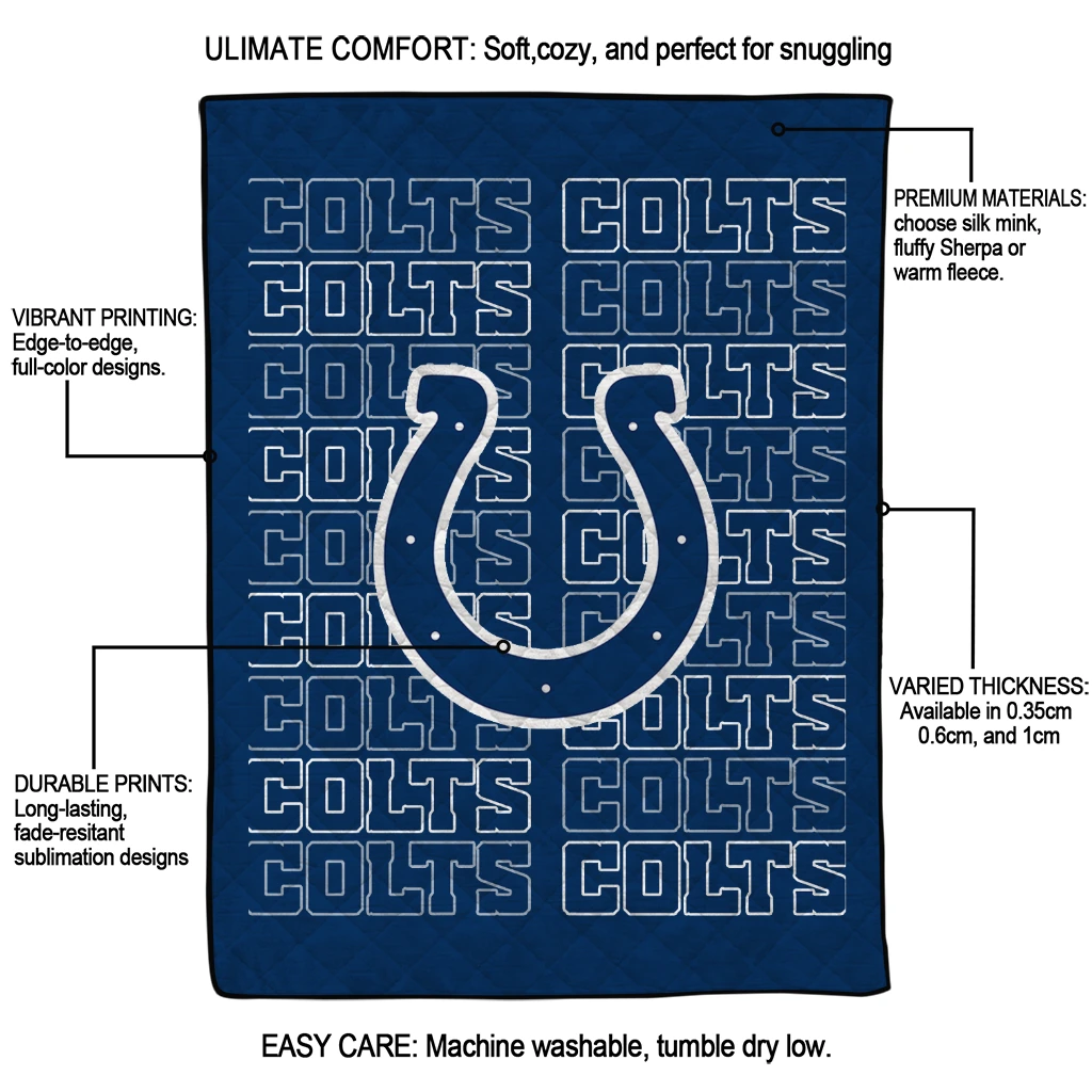 Wrap yourself in warmth and pride with the Indianapolis Colts Bold Red Blue Quilt Blanket from the Indianapolis Colts Blankets collection at Yes That Blanket. Made from 100% premium quilting-weight polyester blended with a touch of microfiber, this quilt offers a smooth, soft finish you’ll love. Choose between two quilting styles—Stipple or Diagonal—and enjoy the comfort of a cotton-filled layer inside that adds extra coziness for every season. The border is available in classic black or white, giving your design a clean, timeless edge.