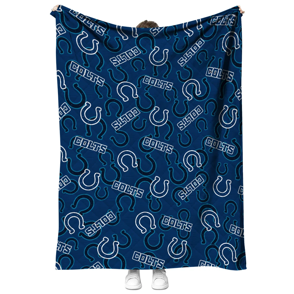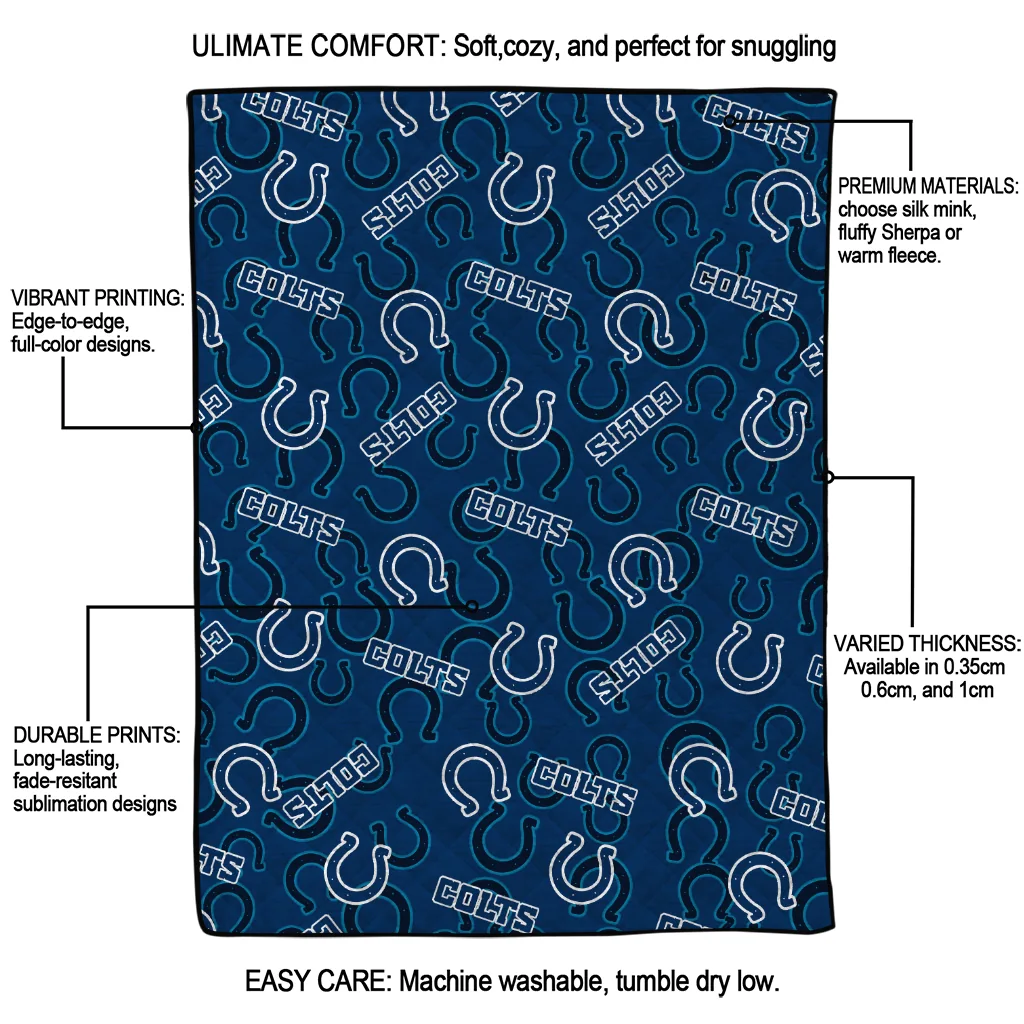 Wrap yourself in warmth and pride with the Indianapolis Colts Solid Classic Blue Quilt Blanket from the Indianapolis Colts Blankets collection at Yes That Blanket. Made from 100% premium quilting-weight polyester blended with a touch of microfiber, this quilt offers a smooth, soft finish you’ll love. Choose between two quilting styles—Stipple or Diagonal—and enjoy the comfort of a cotton-filled layer inside that adds extra coziness for every season. The border is available in classic black or white, giving your design a clean, timeless edge.