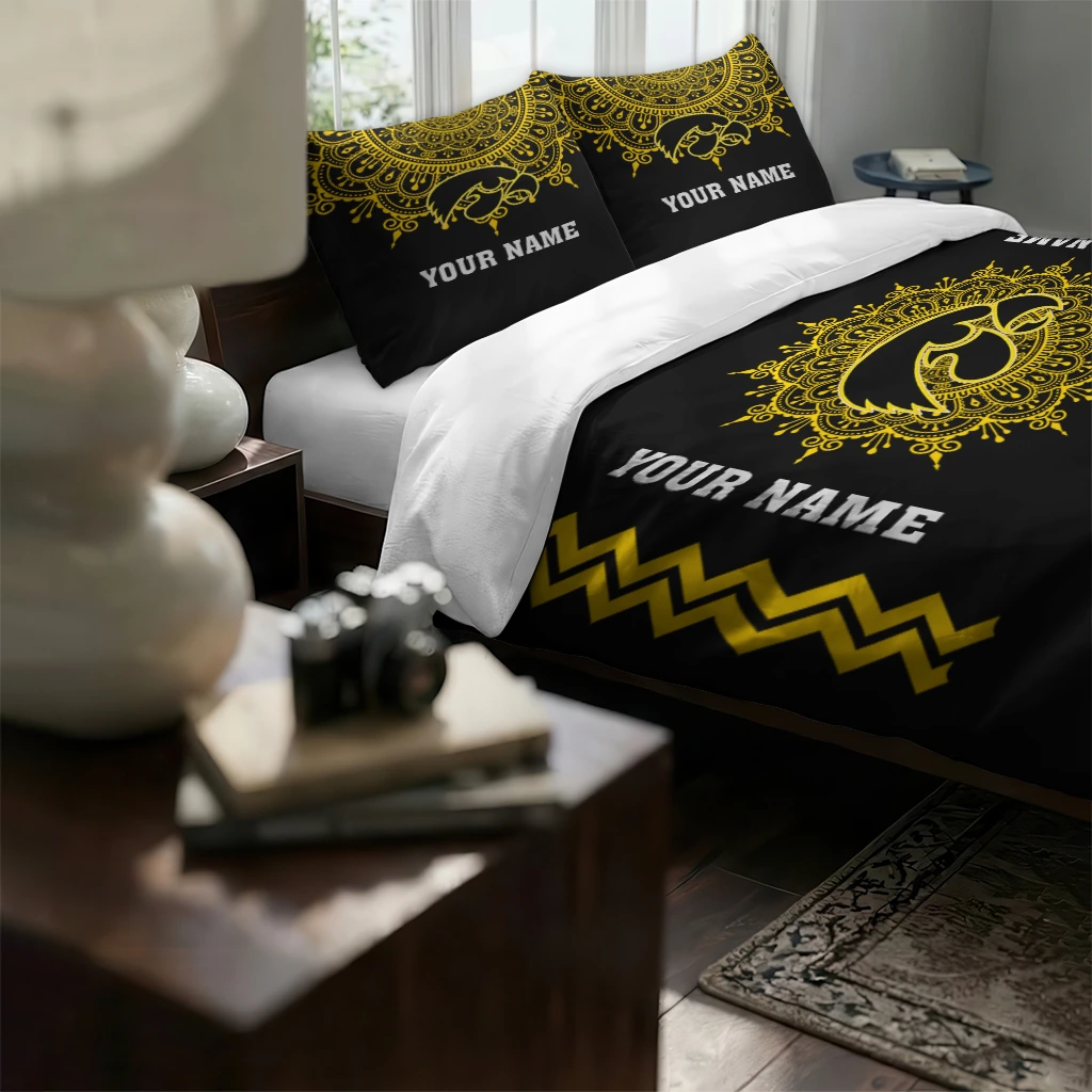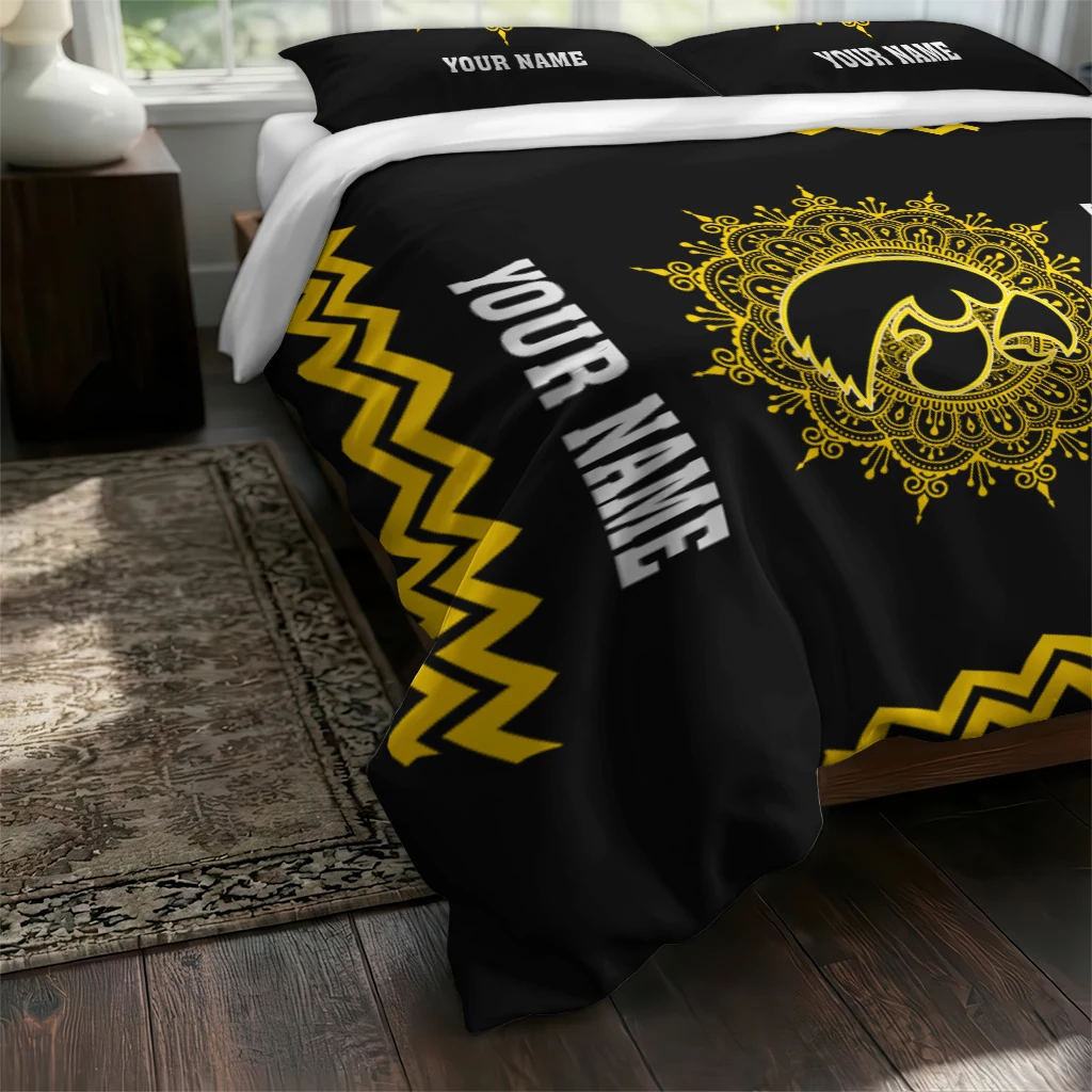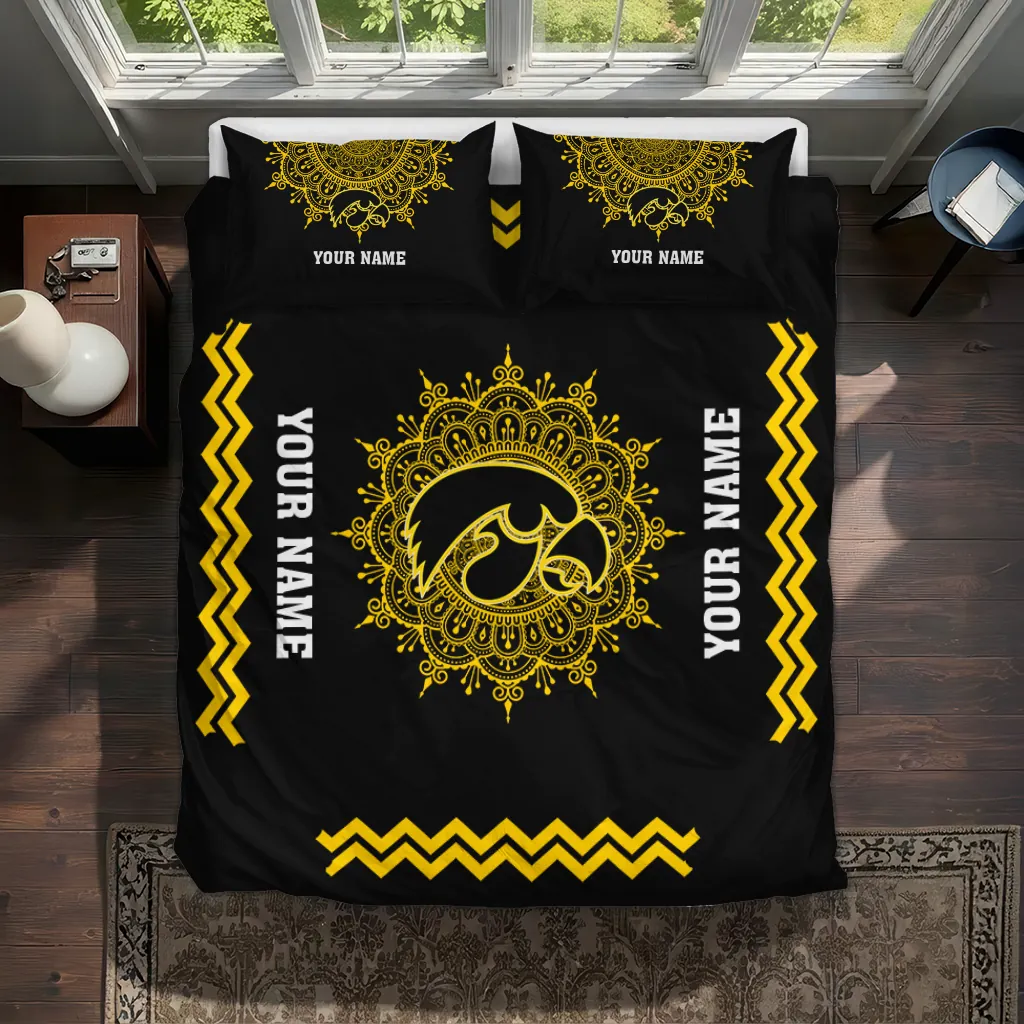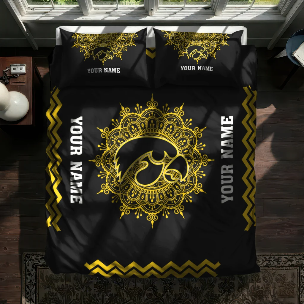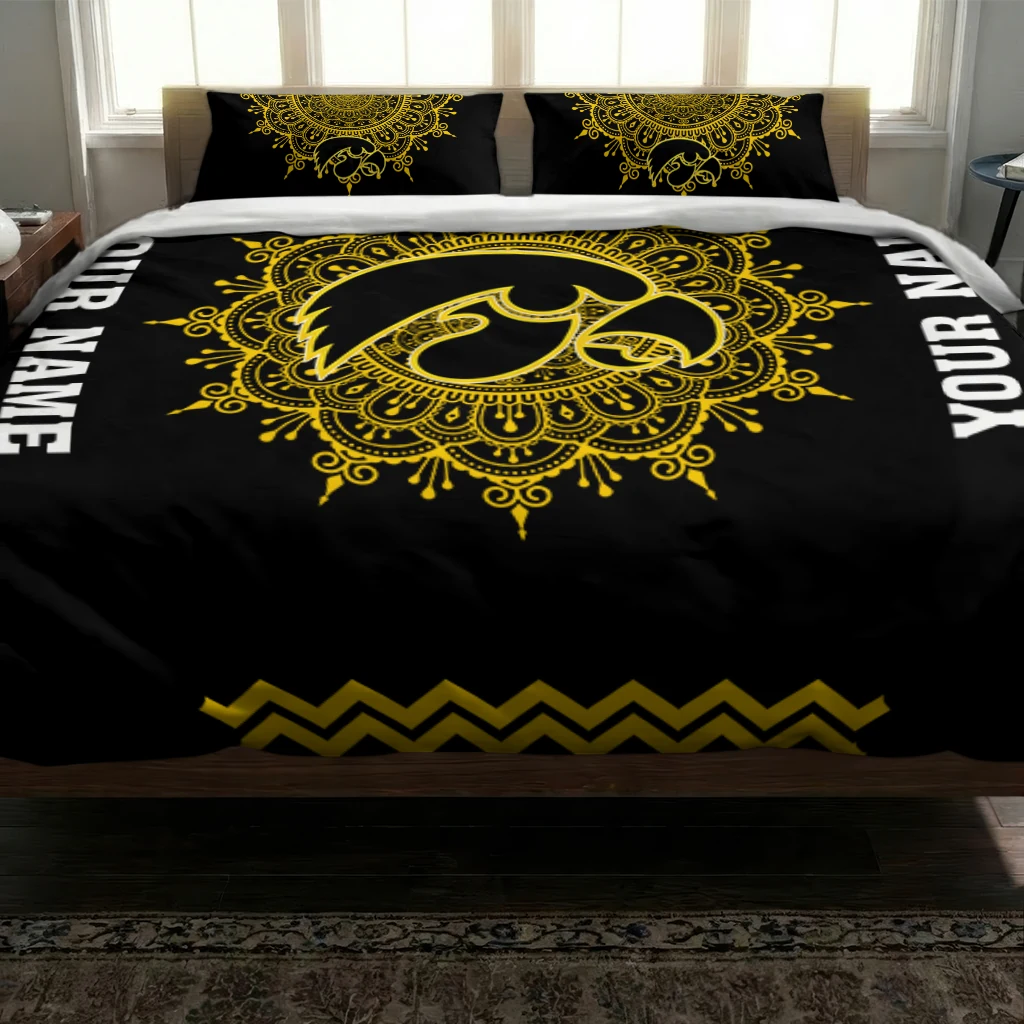 Iowa Hawkeyes Bedding Set – Custom Mandala Lacework Black Yellow