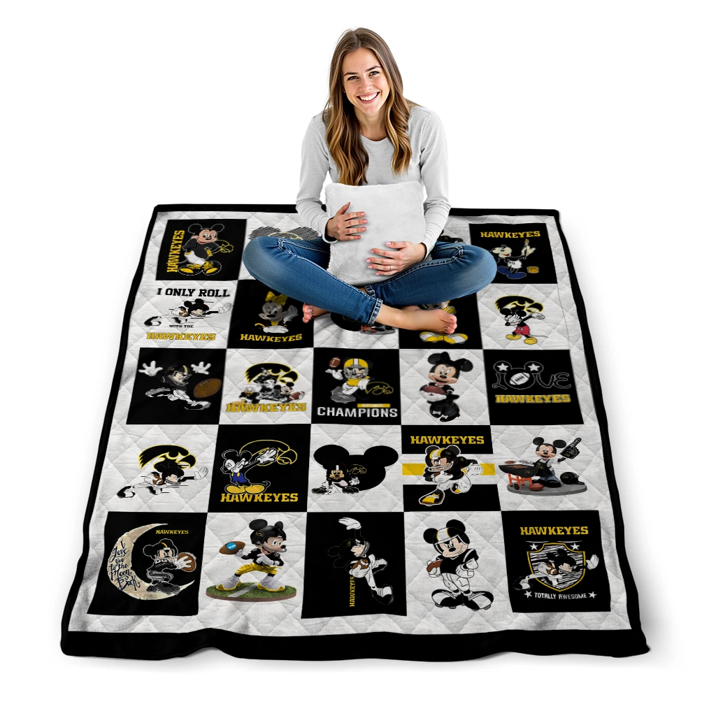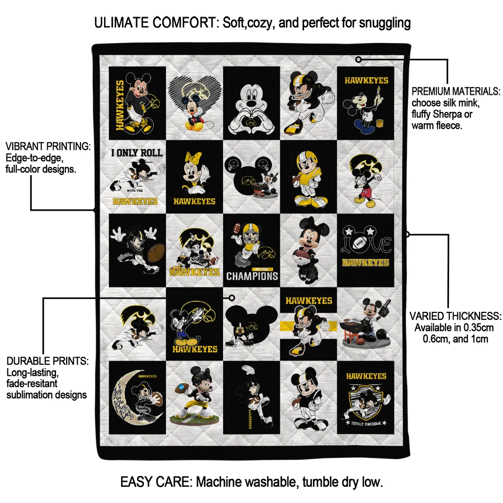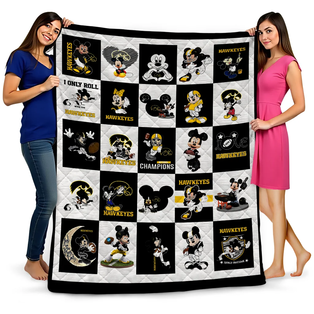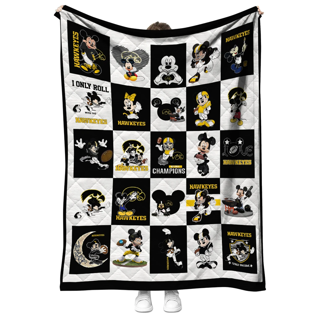 Iowa Hawkeyes Mickey Mouse Motif Black White Quilt Blanket