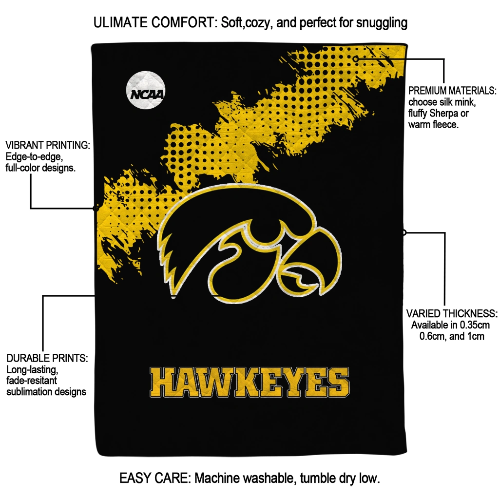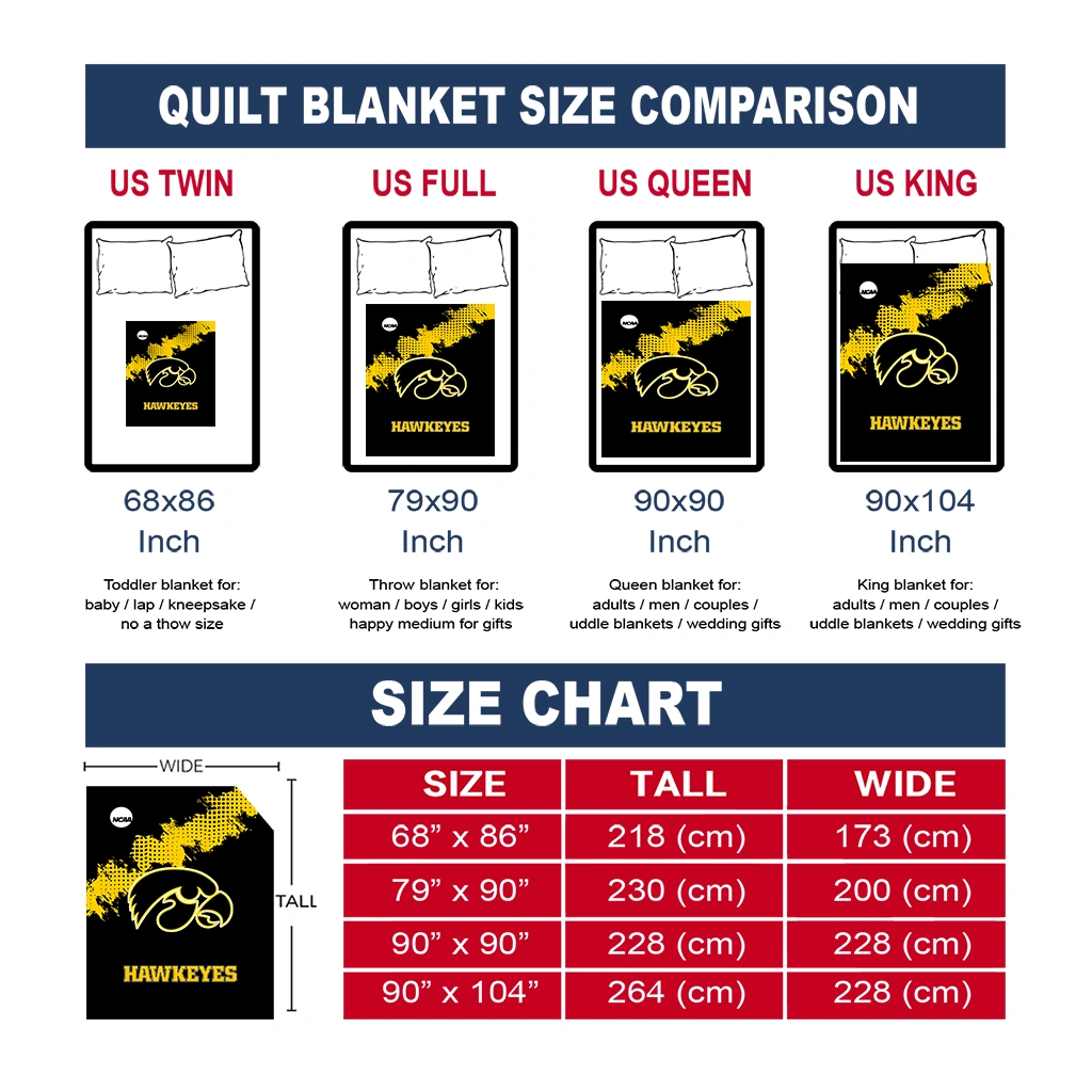 Wrap yourself in warmth and pride with the Iowa Hawkeyes Paint Trail Black Quilt Blanket from the Iowa Hawkeyes Blankets collection at Yes That Blanket. Made from 100% premium quilting-weight polyester blended with a touch of microfiber, this quilt offers a smooth, soft finish you’ll love. Choose between two quilting styles—Stipple or Diagonal—and enjoy the comfort of a cotton-filled layer inside that adds extra coziness for every season. The border is available in classic black or white, giving your design a clean, timeless edge.