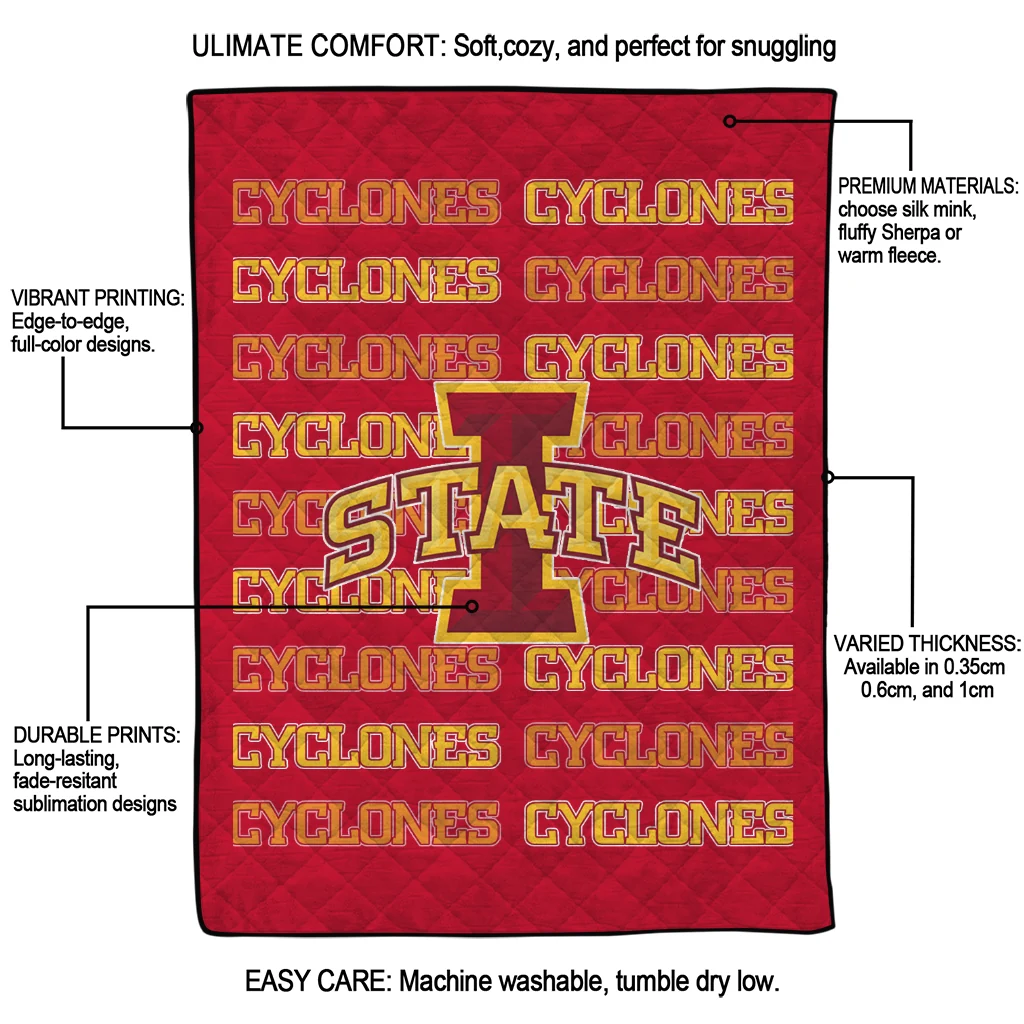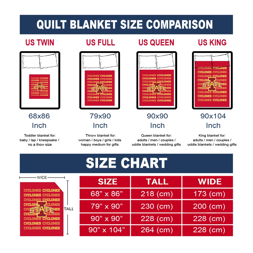 Wrap yourself in warmth and pride with the Iowa State Cyclones Bold Red Quilt Blanket from the Iowa State Cyclones Blankets collection at Yes That Blanket. Made from 100% premium quilting-weight polyester blended with a touch of microfiber, this quilt offers a smooth, soft finish you’ll love. Choose between two quilting styles—Stipple or Diagonal—and enjoy the comfort of a cotton-filled layer inside that adds extra coziness for every season. The border is available in classic black or white, giving your design a clean, timeless edge.