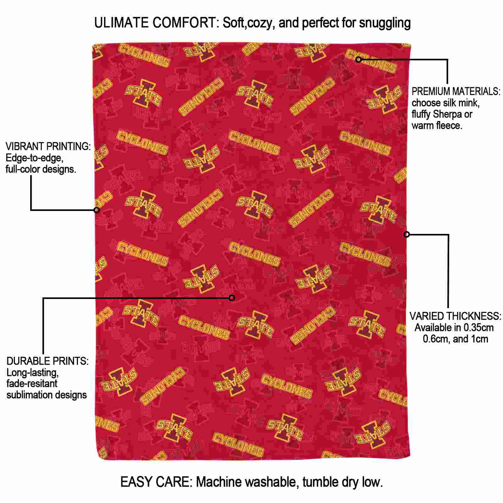 Without a doubt, the Iowa State Cyclones Diehard Fans Red Blanket from Iowa State Cyclones Blankets collection is offering true fans a chance to showcase passion in a cool way. Personalize it with your favorite team's logo or a meaningful name to make it uniquely yours. Isn't that great? The full-color print ensures vibrant, edge-to-edge designs, bringing your sports enthusiasm to life!