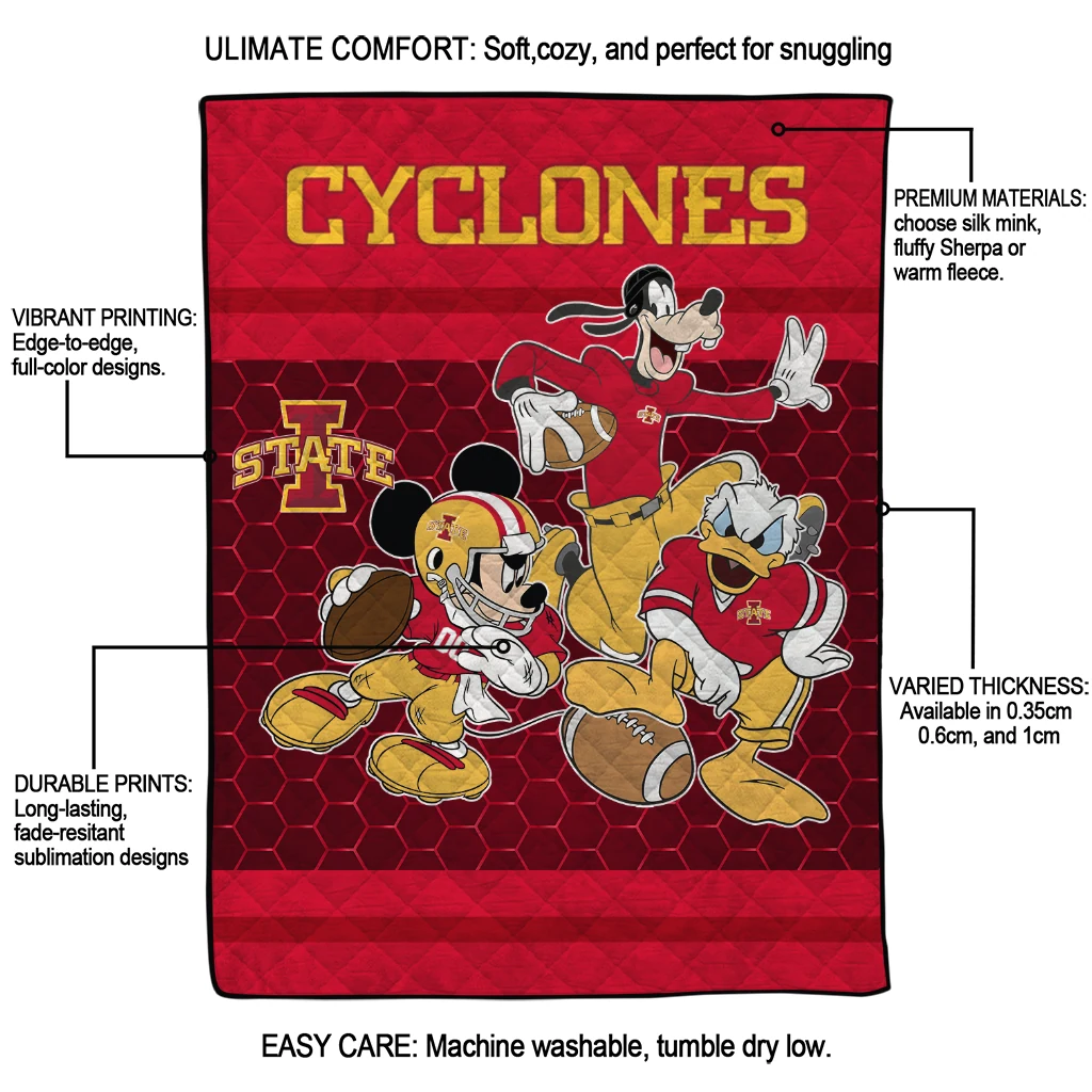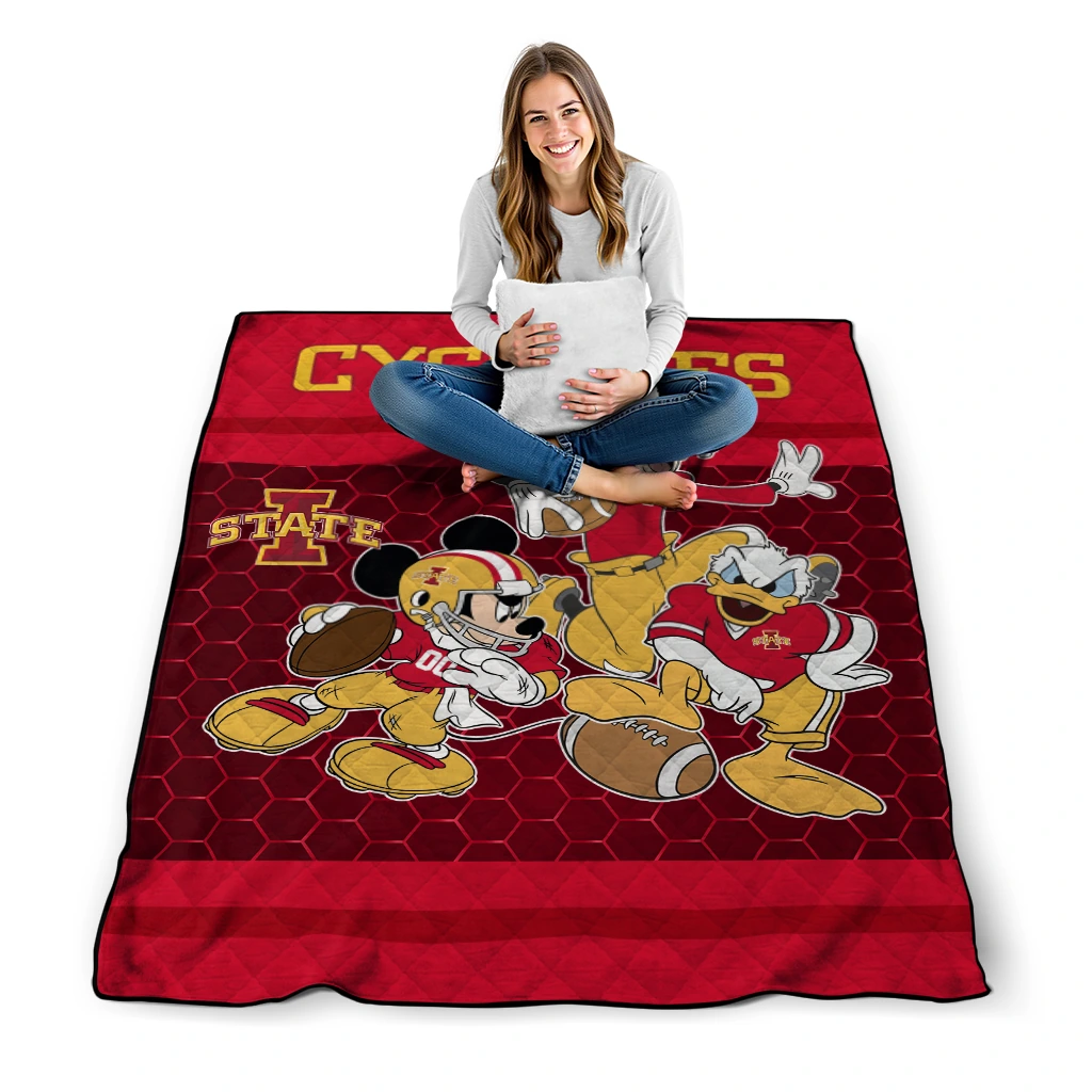 Wrap yourself in warmth and pride with the Iowa State Cyclones Disney Football Red Quilt Blanket from the Iowa State Cyclones Blankets collection at Yes That Blanket. Made from 100% premium quilting-weight polyester blended with a touch of microfiber, this quilt offers a smooth, soft finish you’ll love. Choose between two quilting styles—Stipple or Diagonal—and enjoy the comfort of a cotton-filled layer inside that adds extra coziness for every season. The border is available in classic black or white, giving your design a clean, timeless edge.