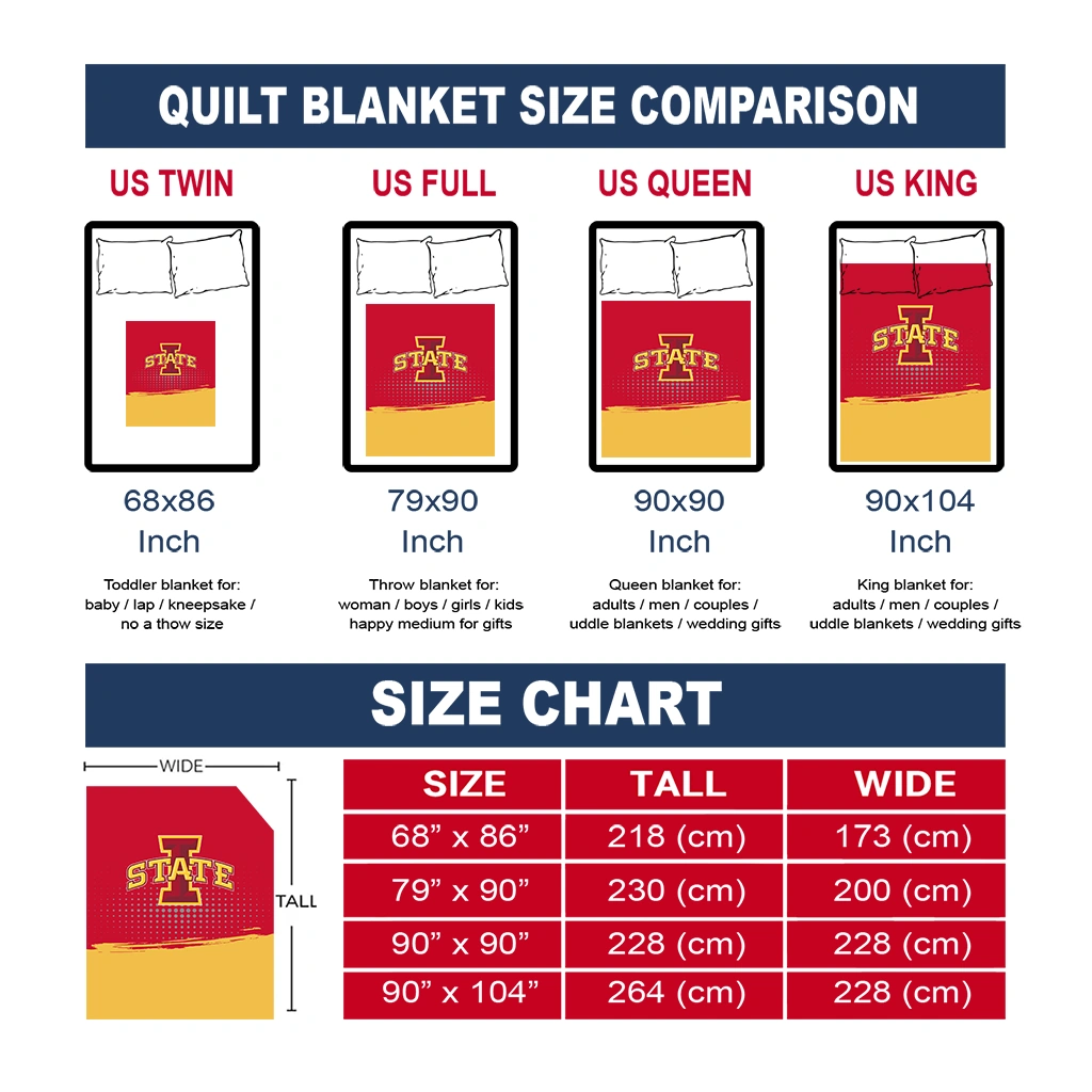 Wrap yourself in warmth and pride with the Iowa State Cyclones Dot Illusion Red Quilt Blanket from the Iowa State Cyclones Blankets collection at Yes That Blanket. Made from 100% premium quilting-weight polyester blended with a touch of microfiber, this quilt offers a smooth, soft finish you’ll love. Choose between two quilting styles—Stipple or Diagonal—and enjoy the comfort of a cotton-filled layer inside that adds extra coziness for every season. The border is available in classic black or white, giving your design a clean, timeless edge.