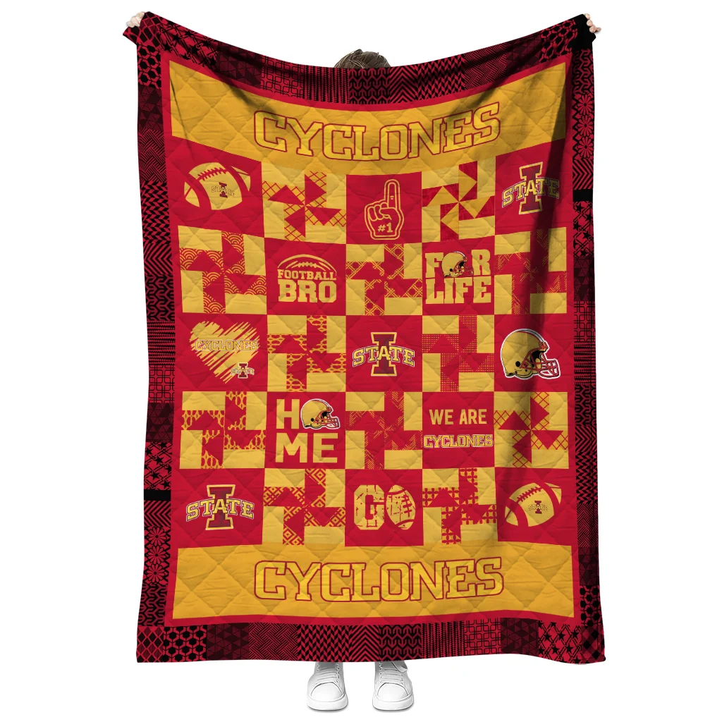 Wrap yourself in warmth and pride with the Iowa State Cyclones Helmet Heart Red Quilt Blanket from the Iowa State Cyclones Blankets collection at Yes That Blanket. Made from 100% premium quilting-weight polyester blended with a touch of microfiber, this quilt offers a smooth, soft finish you’ll love. Choose between two quilting styles—Stipple or Diagonal—and enjoy the comfort of a cotton-filled layer inside that adds extra coziness for every season. The border is available in classic black or white, giving your design a clean, timeless edge.