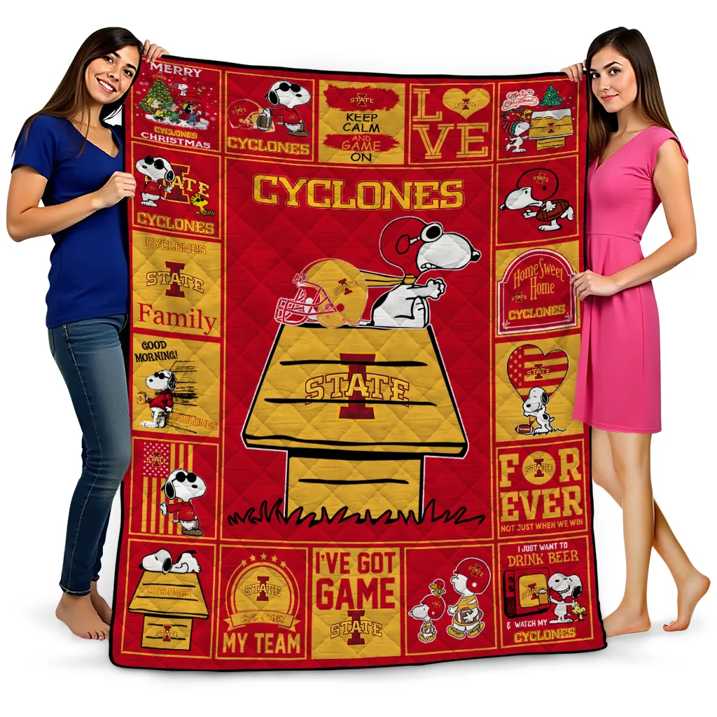 Wrap yourself in warmth and pride with the Iowa State Cyclones Snoopy Love Red Quilt Blanket from the Iowa State Cyclones Blankets collection at Yes That Blanket. Made from 100% premium quilting-weight polyester blended with a touch of microfiber, this quilt offers a smooth, soft finish you’ll love. Choose between two quilting styles—Stipple or Diagonal—and enjoy the comfort of a cotton-filled layer inside that adds extra coziness for every season. The border is available in classic black or white, giving your design a clean, timeless edge.