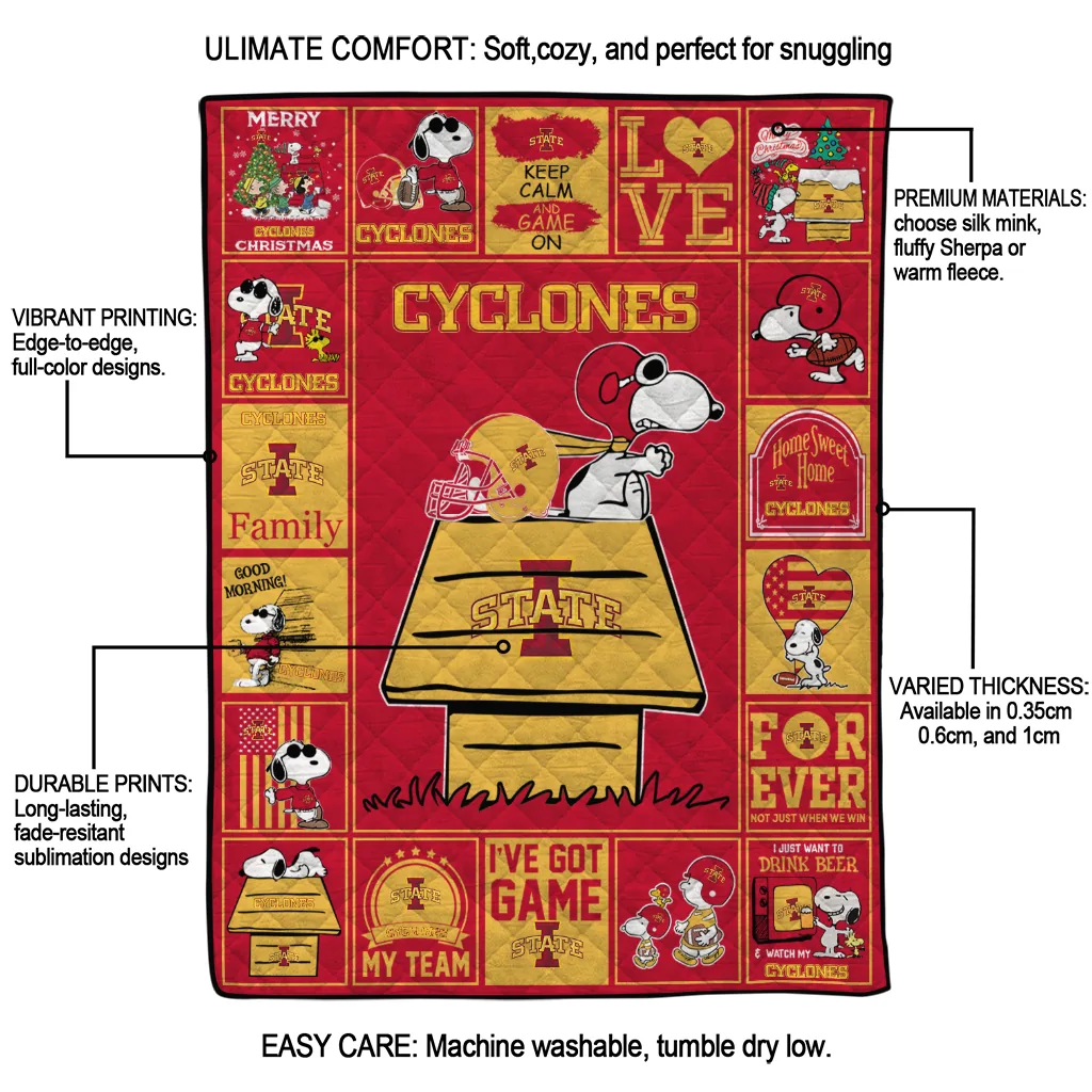The Iowa State Cyclones Snoopy Love Red Quilt Blanket is more than a blanket—it’s everyday comfort, thoughtfully made. Crafted from premium quilting fabric with a soft microfiber touch, it offers a smooth hand-feel and lasting coziness. Layered quilting with a cotton-filled core provides adaptable warmth across seasons while maintaining a clean, tailored look on your bed or sofa.