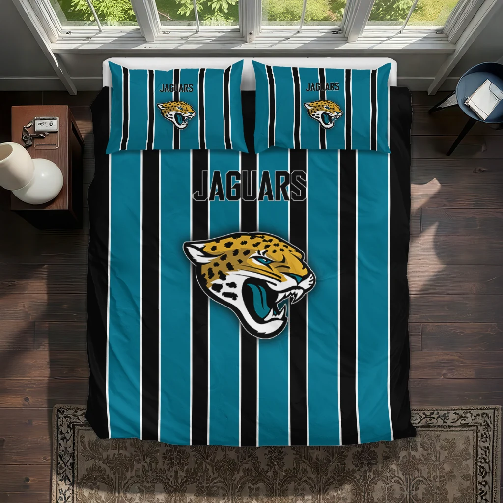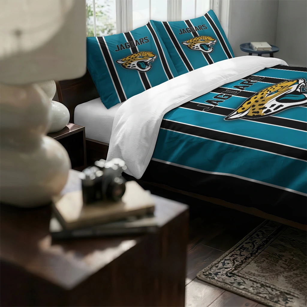 Jacksonville Jaguars Bedding Set – Stripe Style Teal Black