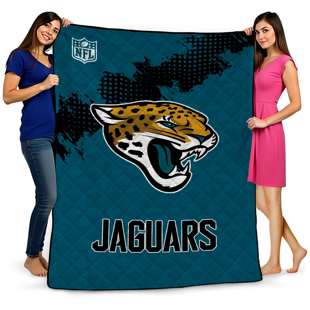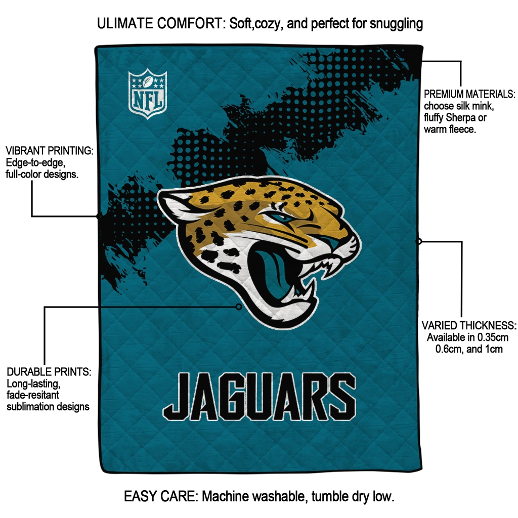Wrap yourself in warmth and pride with the Jacksonville Jaguars Shield Badge Teal Quilt Blanket from the Jacksonville Jaguars Blankets collection at Yes That Blanket. Made from 100% premium quilting-weight polyester blended with a touch of microfiber, this quilt offers a smooth, soft finish you’ll love. Choose between two quilting styles—Stipple or Diagonal—and enjoy the comfort of a cotton-filled layer inside that adds extra coziness for every season. The border is available in classic black or white, giving your design a clean, timeless edge.