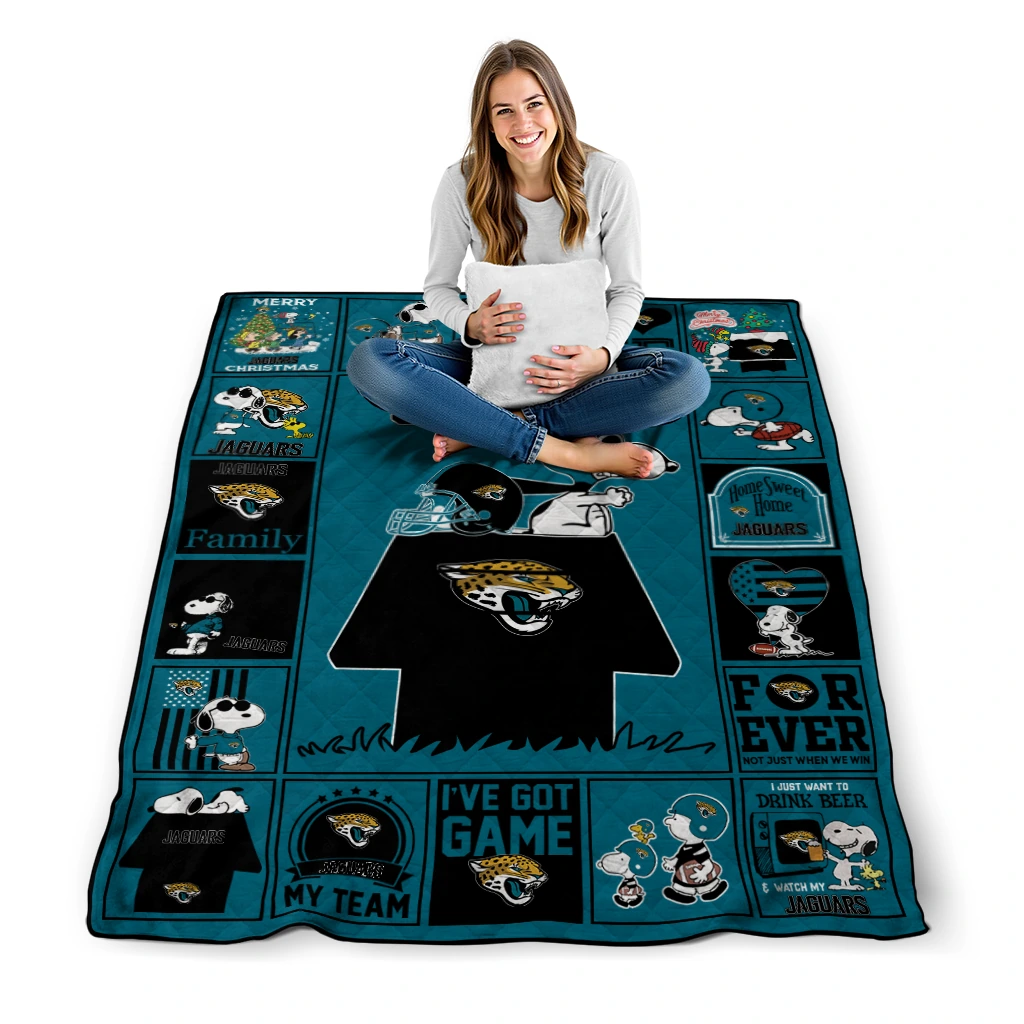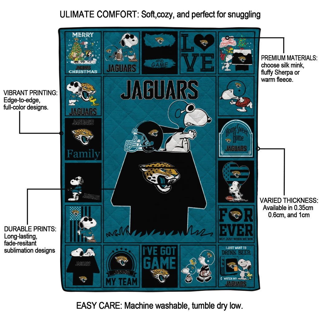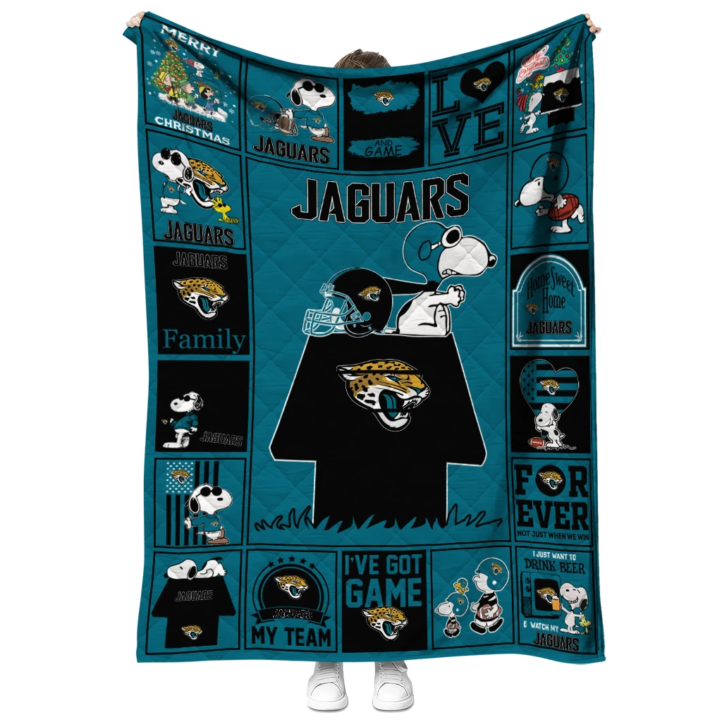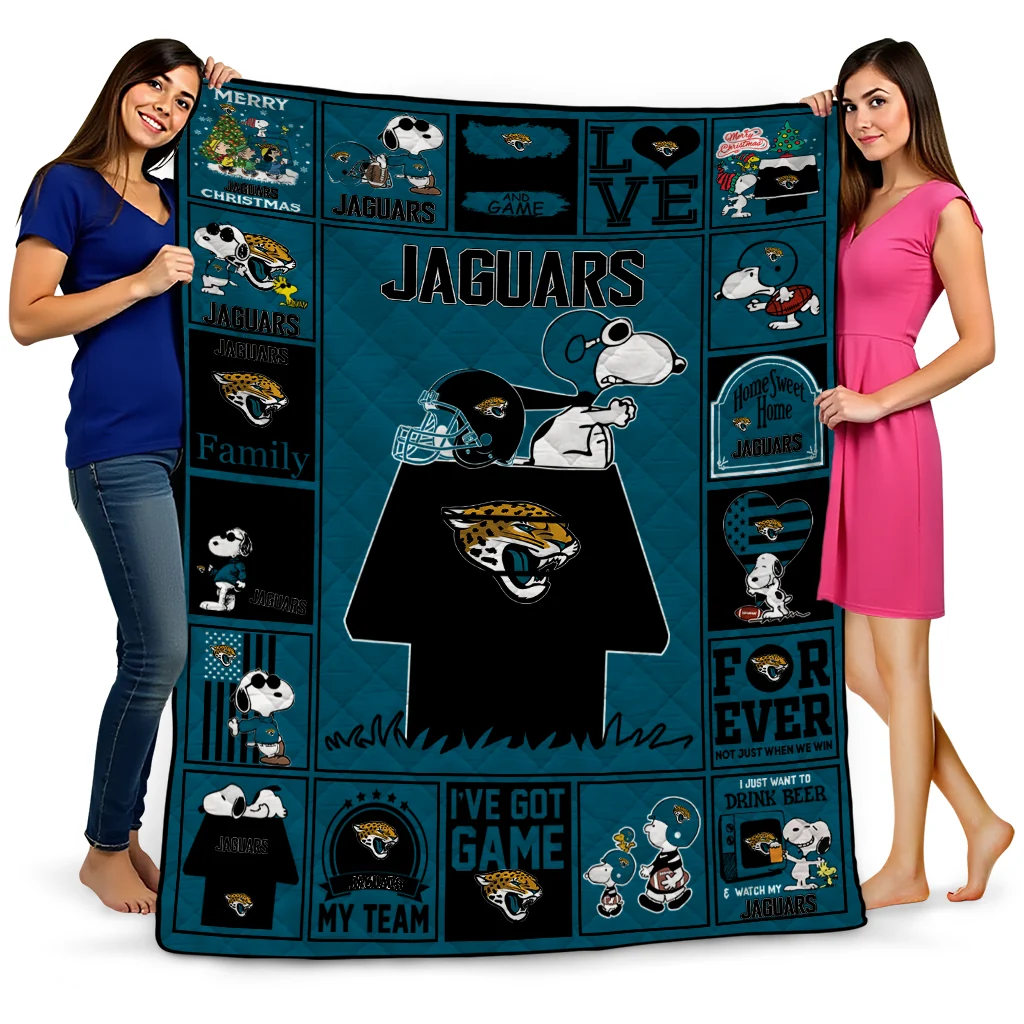 Jacksonville Jaguars Snoopy Love Teal Quilt Blanket
