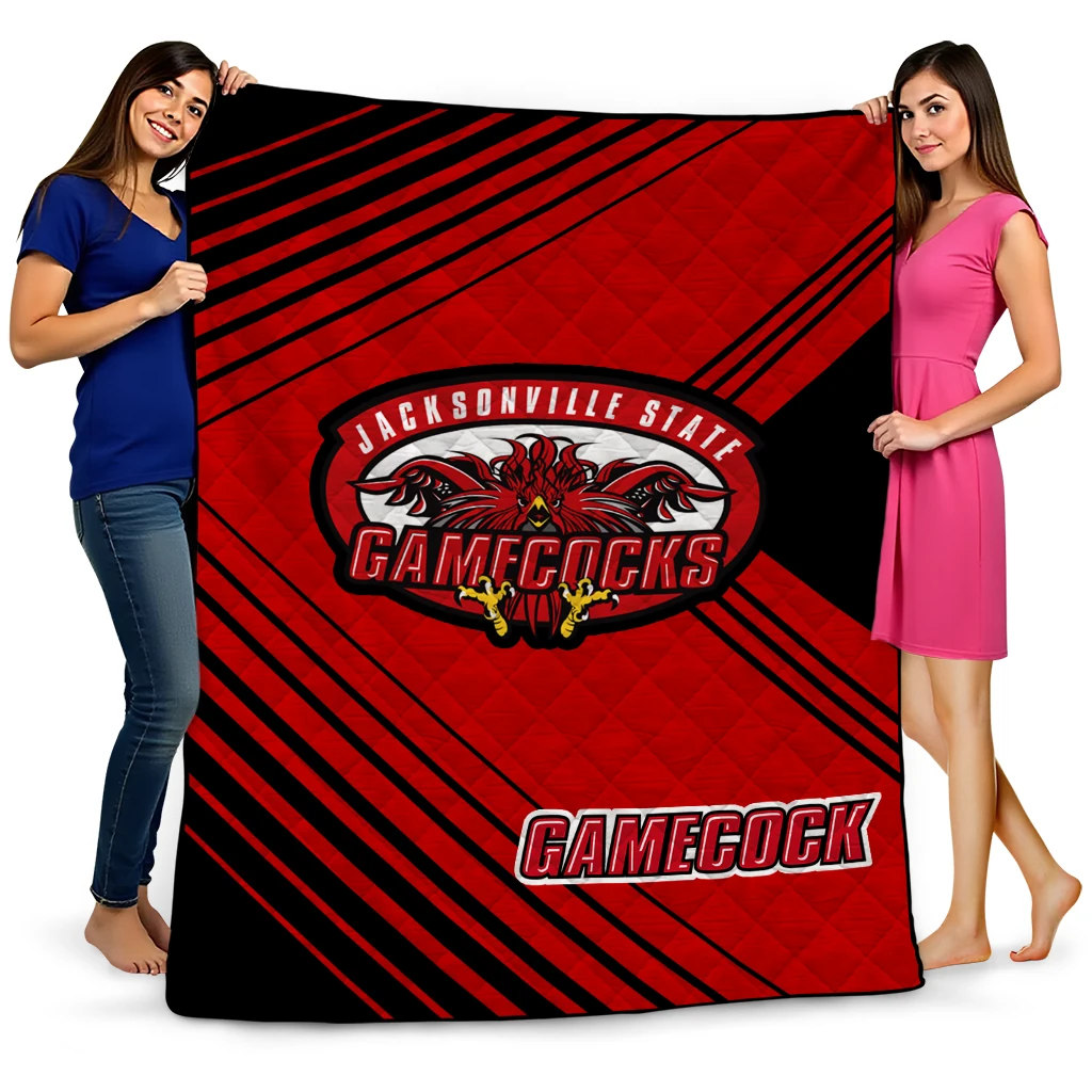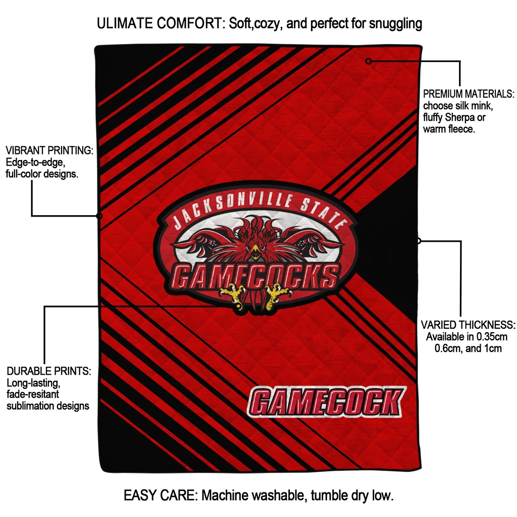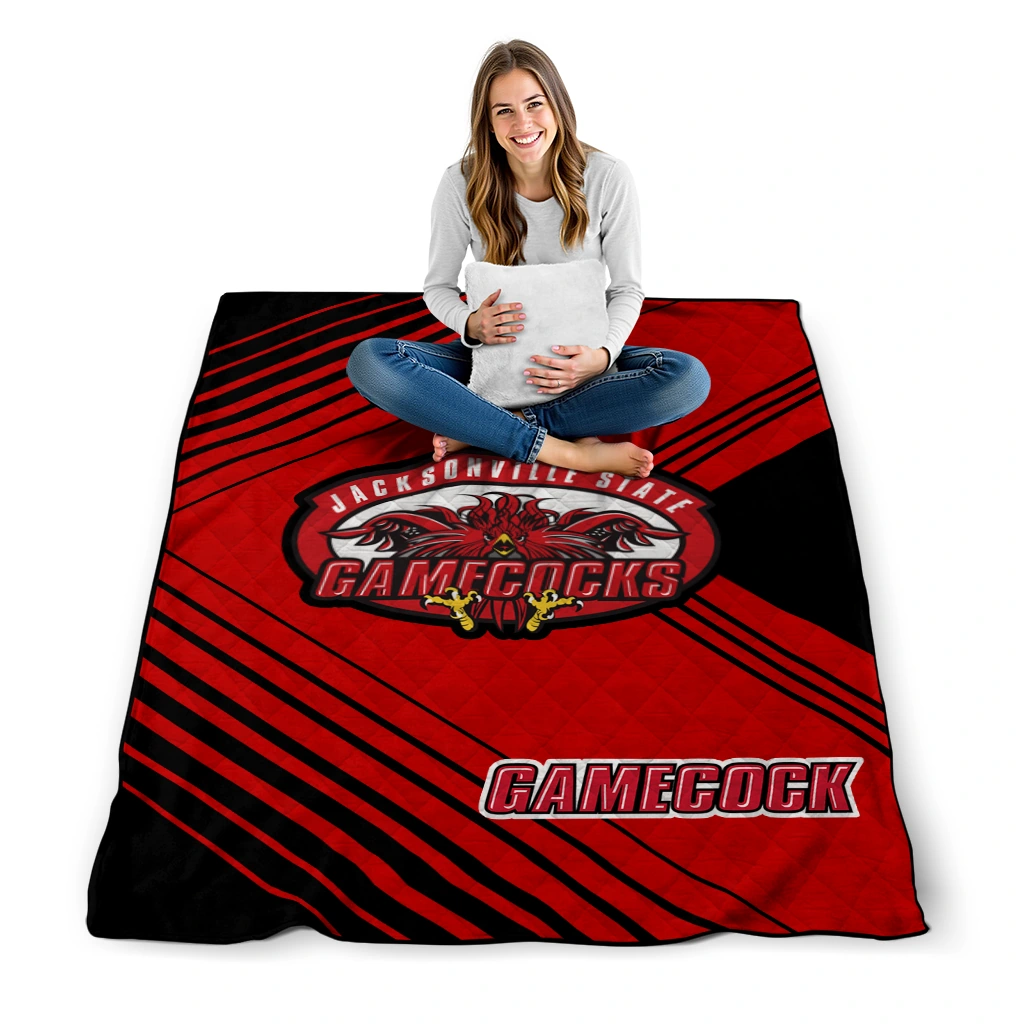 Wrap yourself in warmth and pride with the Jacksonville State Gamecocks Arrow Layers Red Quilt Blanket from the Jacksonville State Gamecocks Blankets collection at Yes That Blanket. Made from 100% premium quilting-weight polyester blended with a touch of microfiber, this quilt offers a smooth, soft finish you’ll love. Choose between two quilting styles—Stipple or Diagonal—and enjoy the comfort of a cotton-filled layer inside that adds extra coziness for every season. The border is available in classic black or white, giving your design a clean, timeless edge.