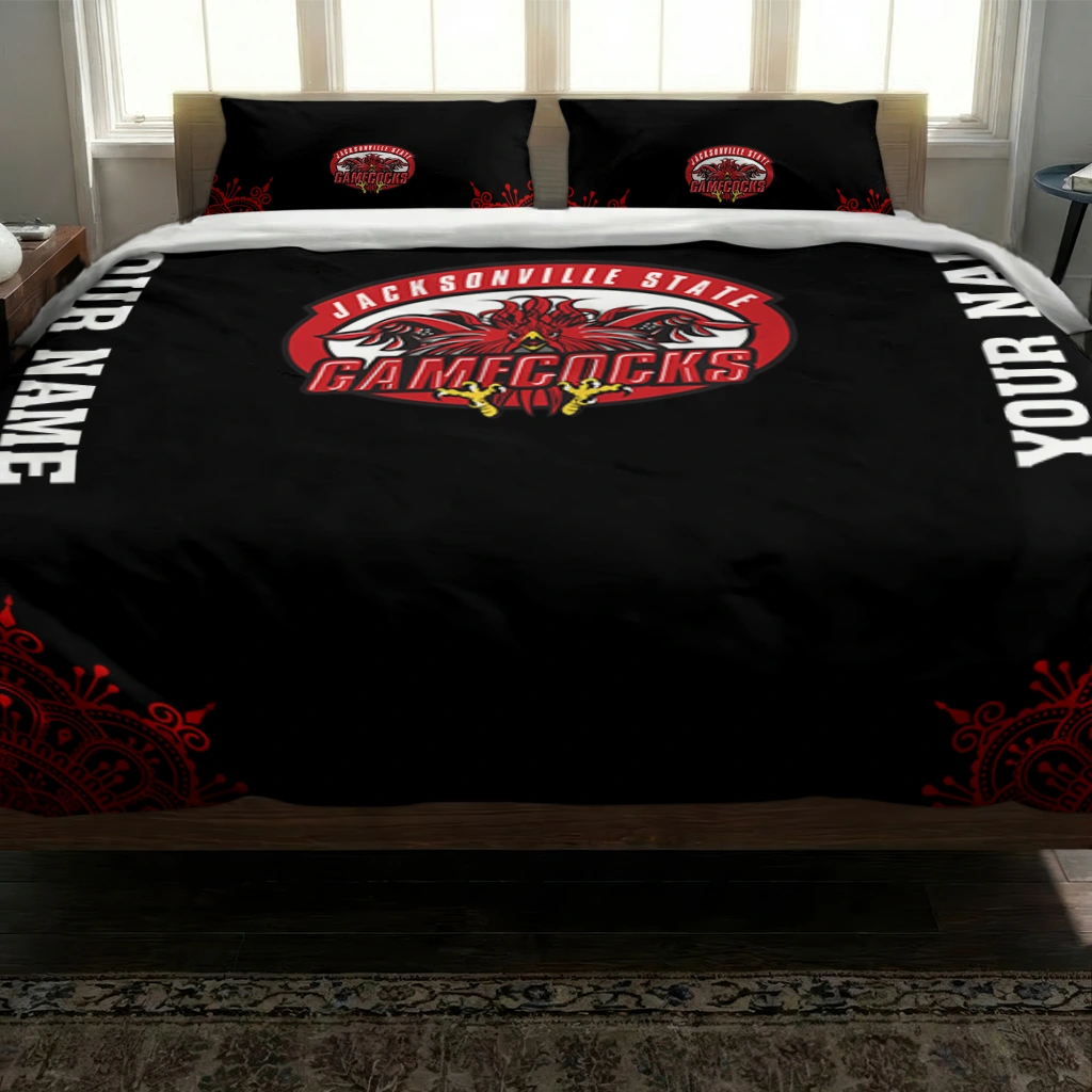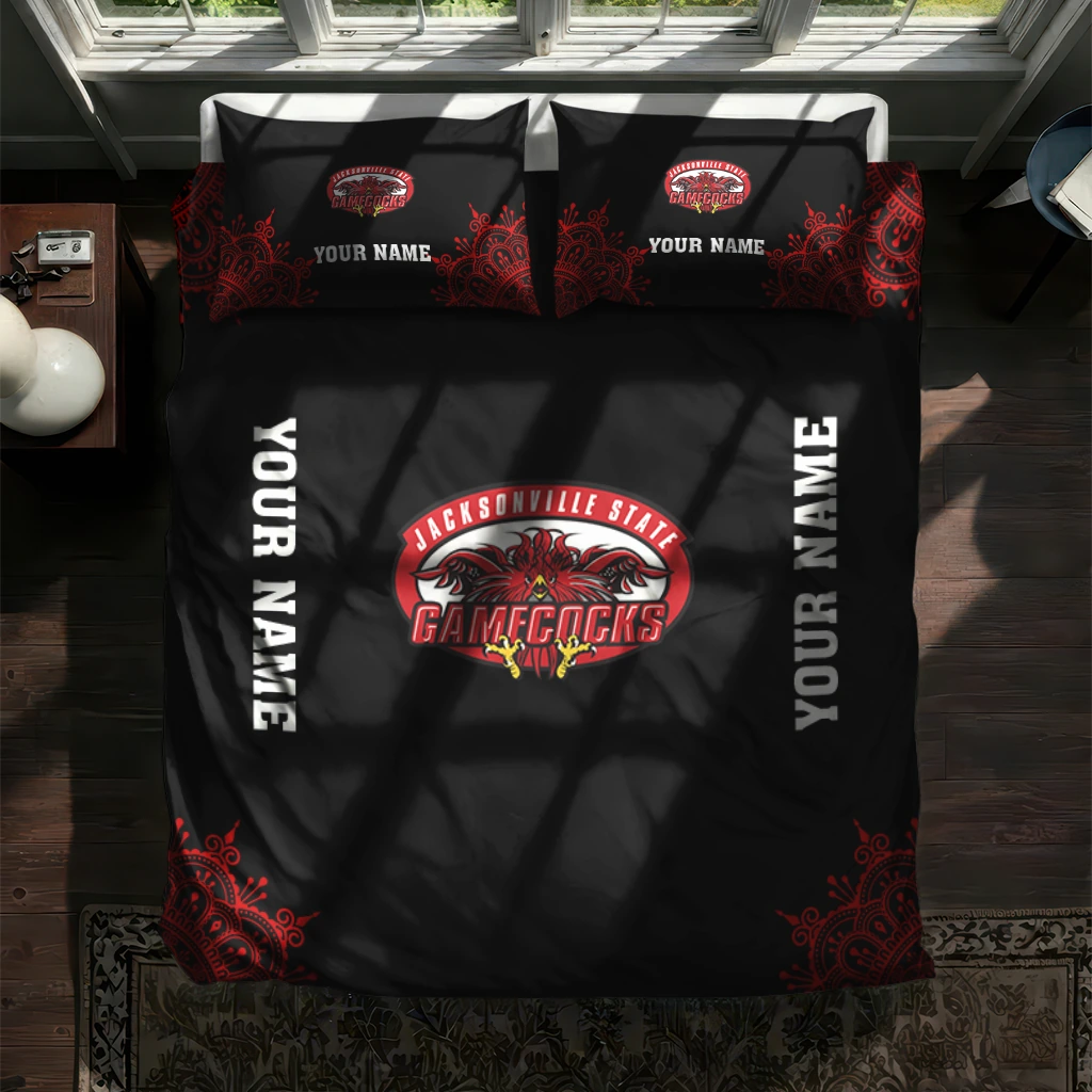 Jacksonville State Gamecocks Bedding Set – Personalized Mandala Lacework Black Red