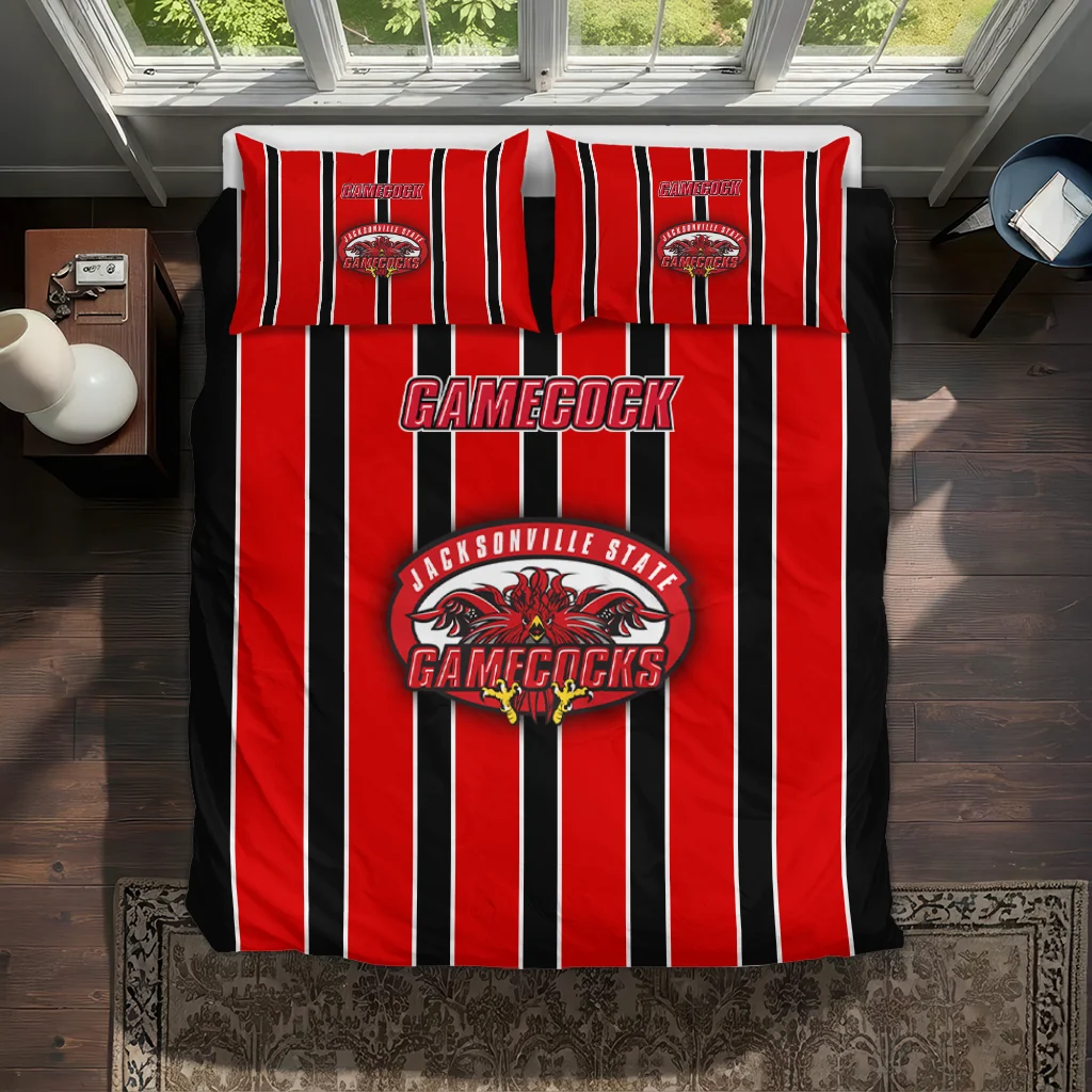 Jacksonville State Gamecocks Bedding Set – Stripe Style Red Black