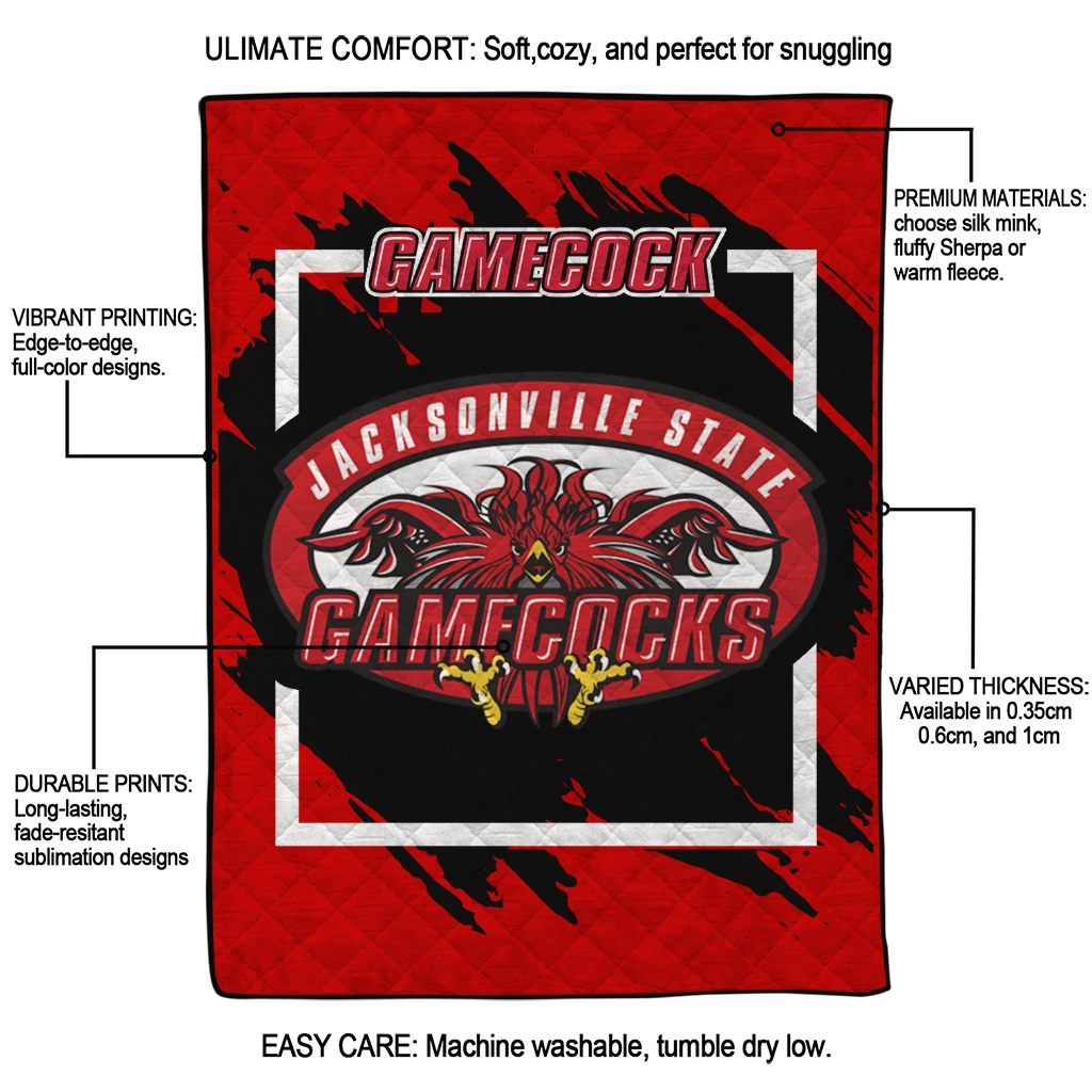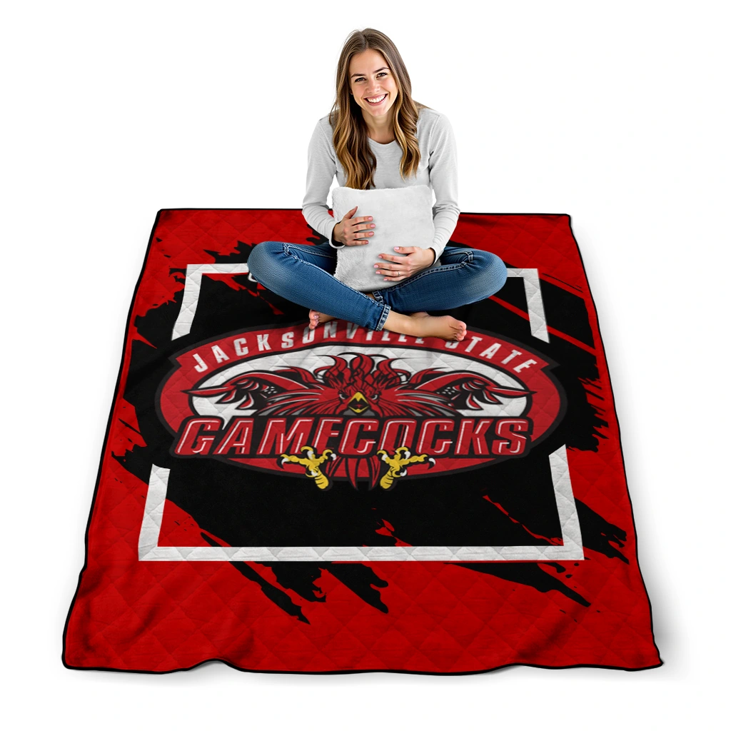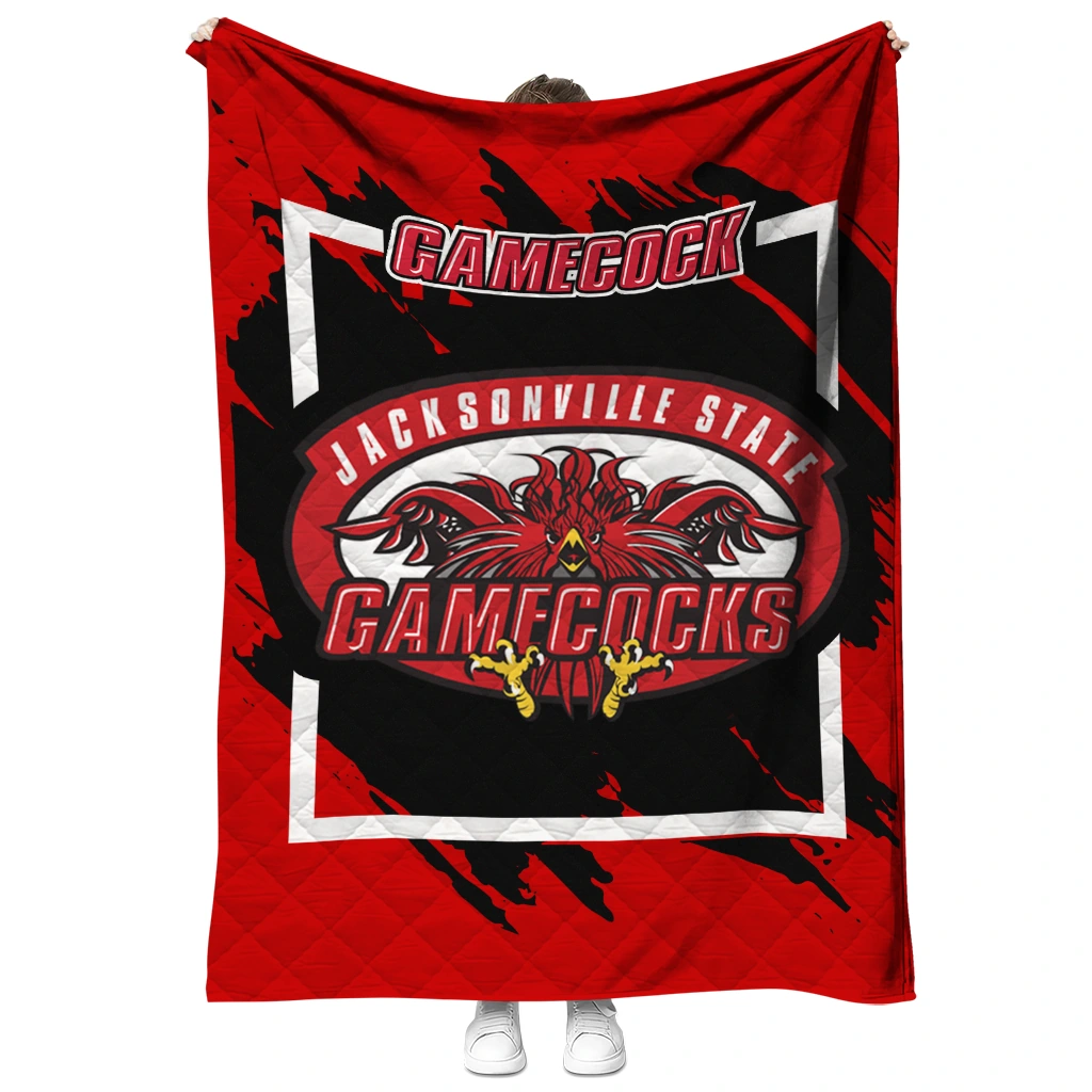 Wrap yourself in warmth and pride with the Jacksonville State Gamecocks Block Border Red Quilt Blanket from the Jacksonville State Gamecocks Blankets collection at Yes That Blanket. Made from 100% premium quilting-weight polyester blended with a touch of microfiber, this quilt offers a smooth, soft finish you’ll love. Choose between two quilting styles—Stipple or Diagonal—and enjoy the comfort of a cotton-filled layer inside that adds extra coziness for every season. The border is available in classic black or white, giving your design a clean, timeless edge.