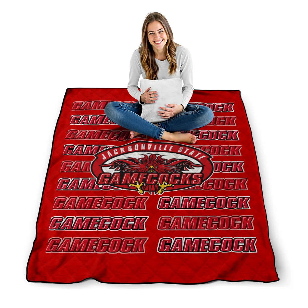 Wrap yourself in warmth and pride with the Jacksonville State Gamecocks Bold Red Quilt Blanket from the Jacksonville State Gamecocks Blankets collection at Yes That Blanket. Made from 100% premium quilting-weight polyester blended with a touch of microfiber, this quilt offers a smooth, soft finish you’ll love. Choose between two quilting styles—Stipple or Diagonal—and enjoy the comfort of a cotton-filled layer inside that adds extra coziness for every season. The border is available in classic black or white, giving your design a clean, timeless edge.