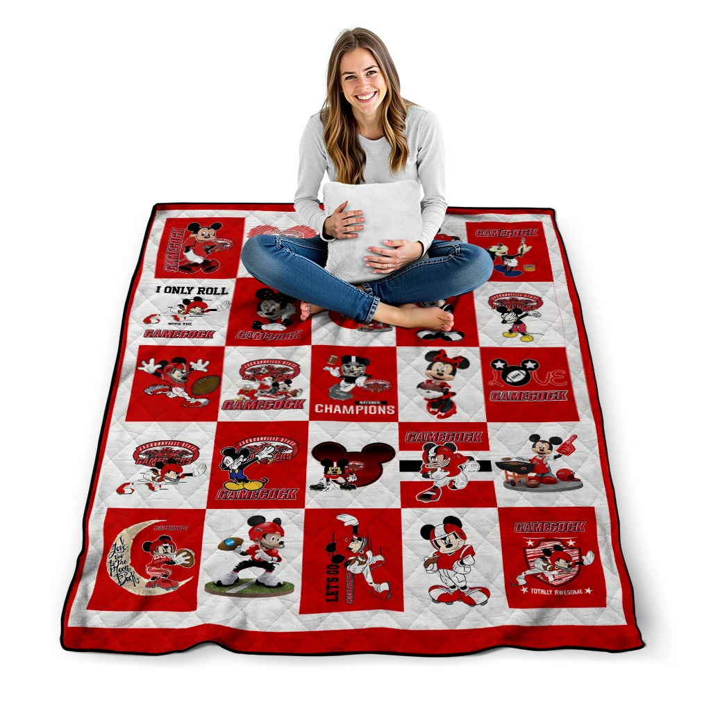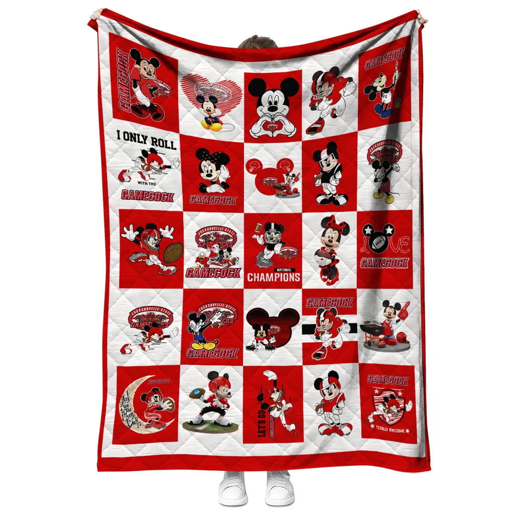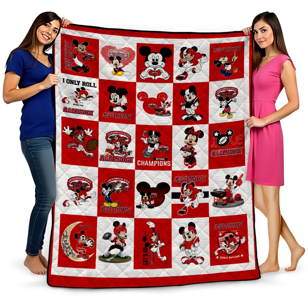 Jacksonville State Gamecocks Mickey Mouse Motif Red White Quilt Blanket