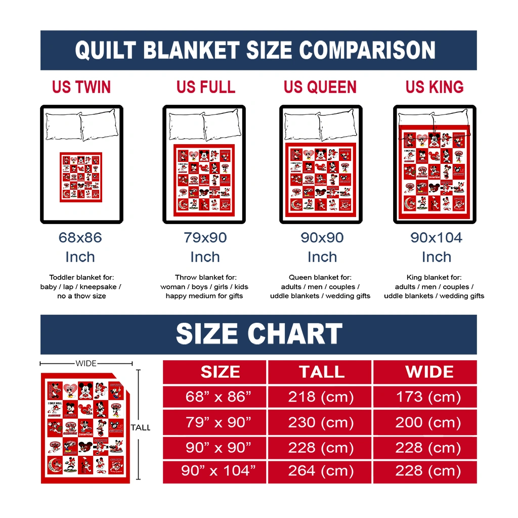 The Jacksonville State Gamecocks Mickey Mouse Motif Red White Quilt Blanket is more than a blanket—it’s everyday comfort, thoughtfully made. Crafted from premium quilting fabric with a soft microfiber touch, it offers a smooth hand-feel and lasting coziness. Layered quilting with a cotton-filled core provides adaptable warmth across seasons while maintaining a clean, tailored look on your bed or sofa.