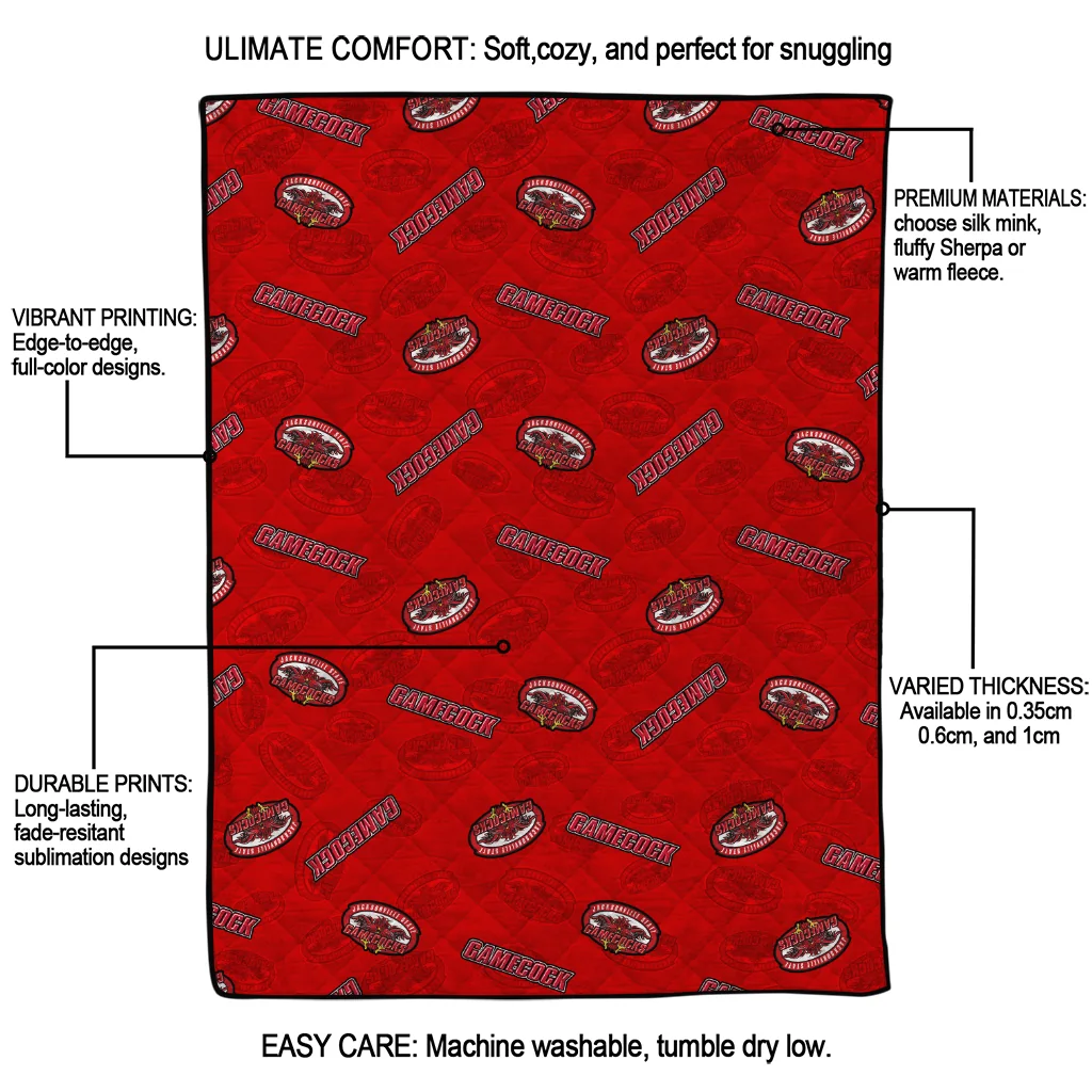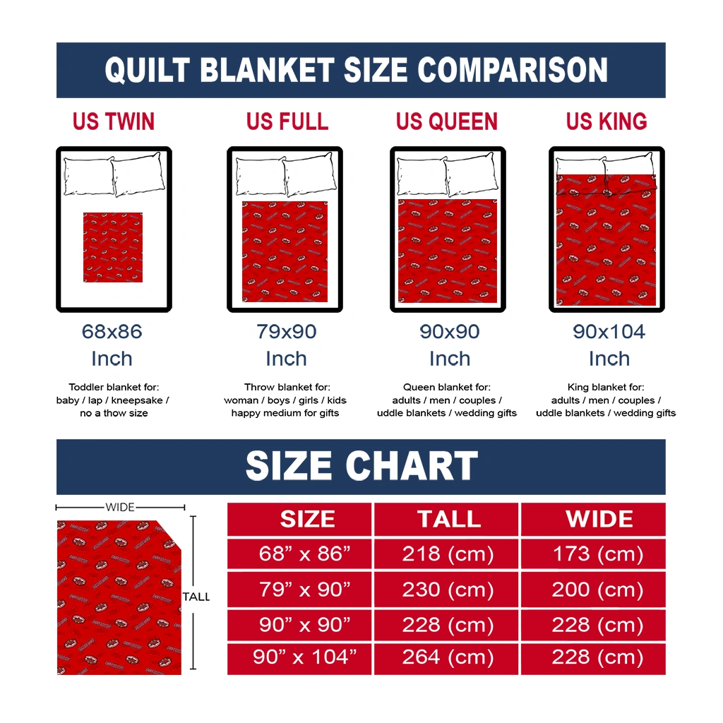 Wrap yourself in warmth and pride with the Jacksonville State Gamecocks Solid Classic Red Quilt Blanket from the Jacksonville State Gamecocks Blankets collection at Yes That Blanket. Made from 100% premium quilting-weight polyester blended with a touch of microfiber, this quilt offers a smooth, soft finish you’ll love. Choose between two quilting styles—Stipple or Diagonal—and enjoy the comfort of a cotton-filled layer inside that adds extra coziness for every season. The border is available in classic black or white, giving your design a clean, timeless edge.