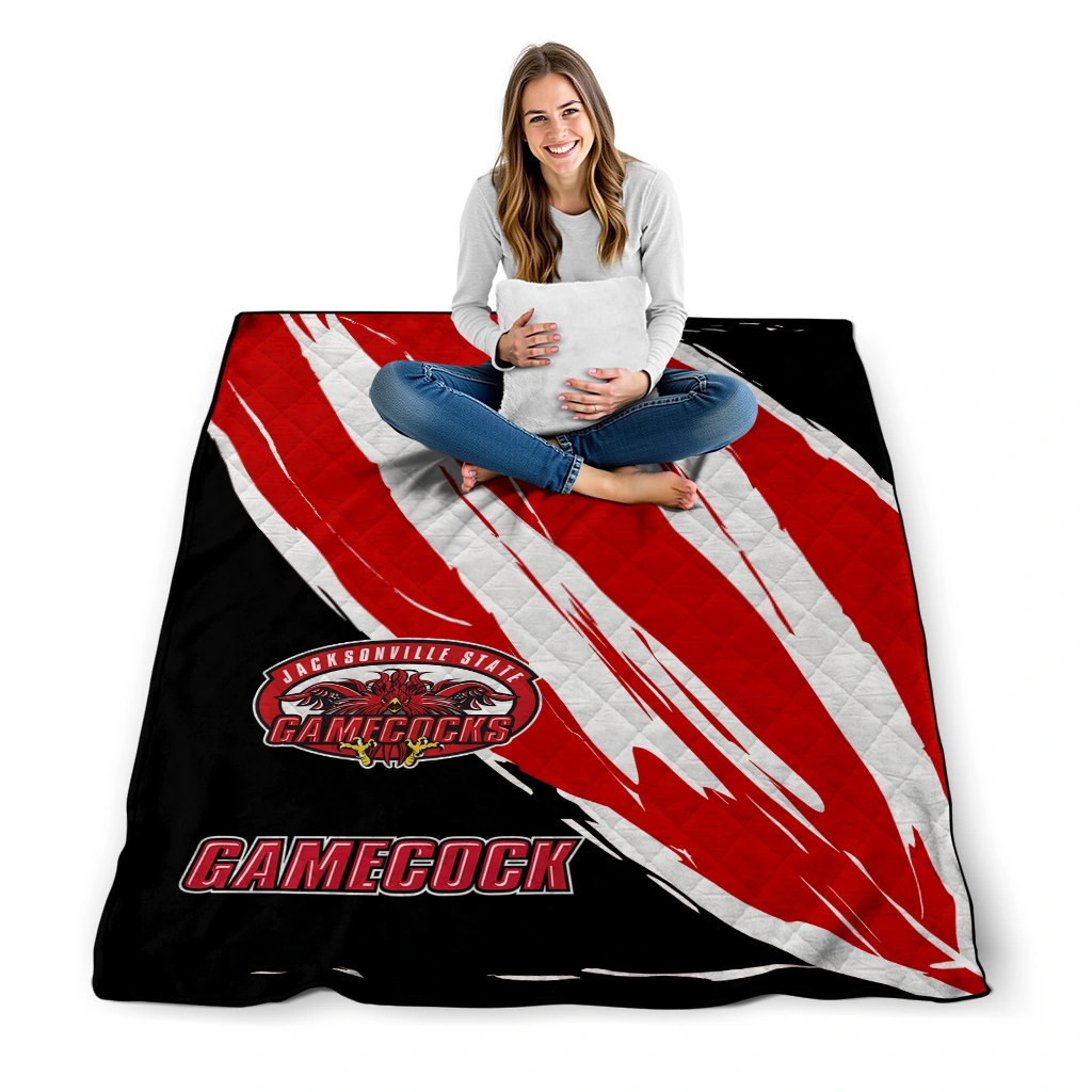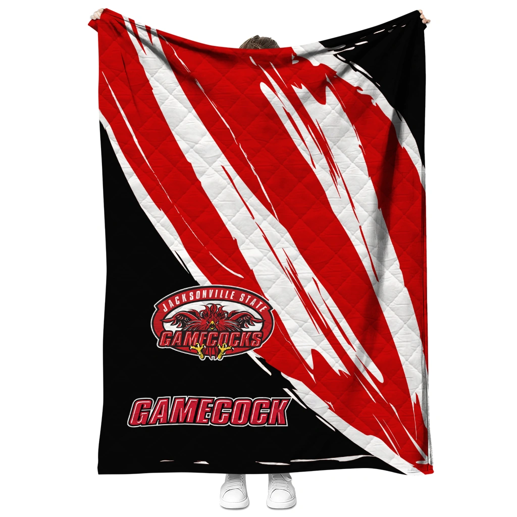 Jacksonville State Gamecocks Stroke Art Red White Quilt Blanket