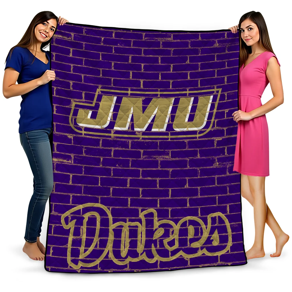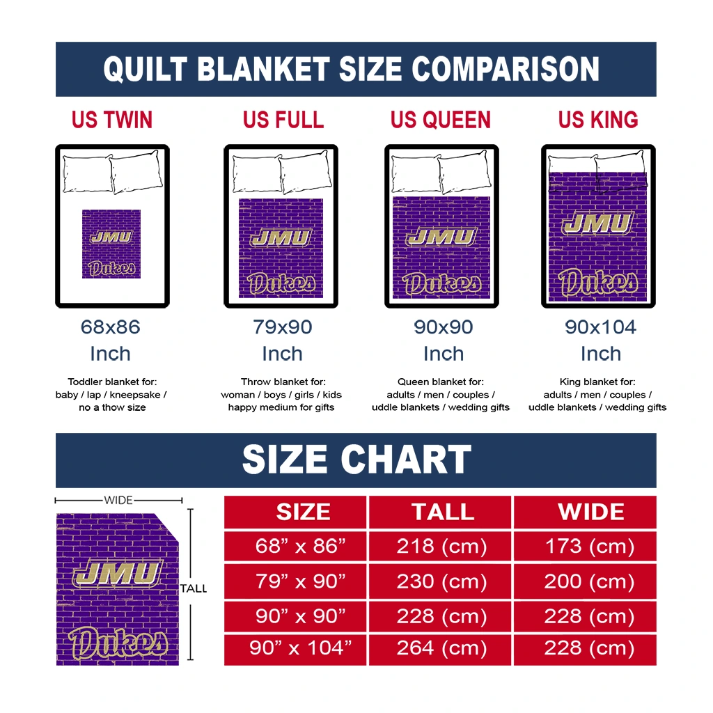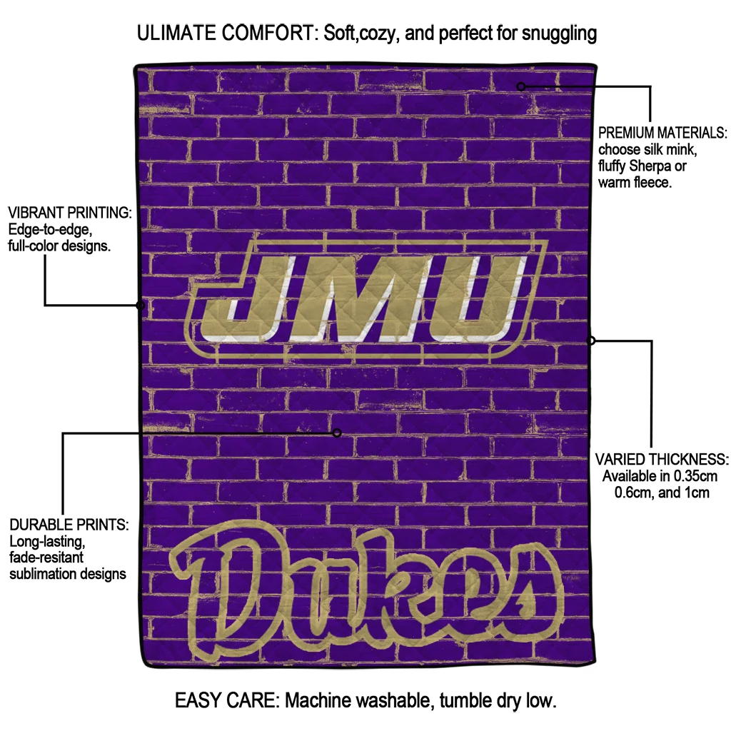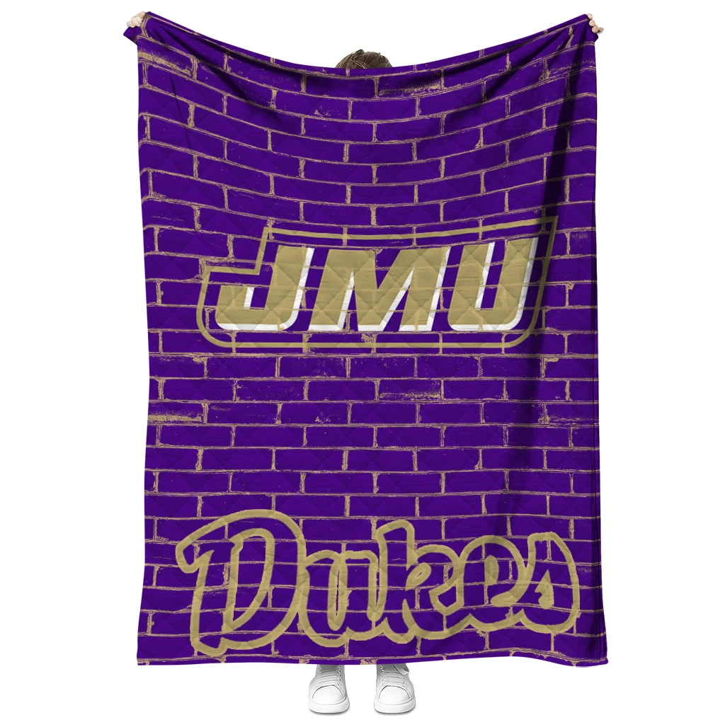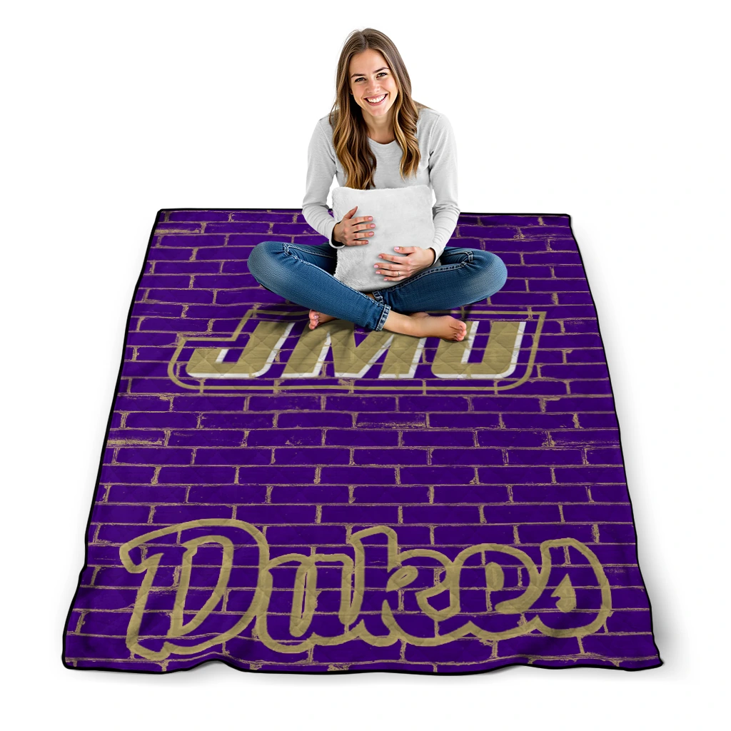 Wrap yourself in warmth and pride with the James Madison Dukes Brick Grid Purple Quilt Blanket from the James Madison Dukes Blankets collection at Yes That Blanket. Made from 100% premium quilting-weight polyester blended with a touch of microfiber, this quilt offers a smooth, soft finish you’ll love. Choose between two quilting styles—Stipple or Diagonal—and enjoy the comfort of a cotton-filled layer inside that adds extra coziness for every season. The border is available in classic black or white, giving your design a clean, timeless edge.