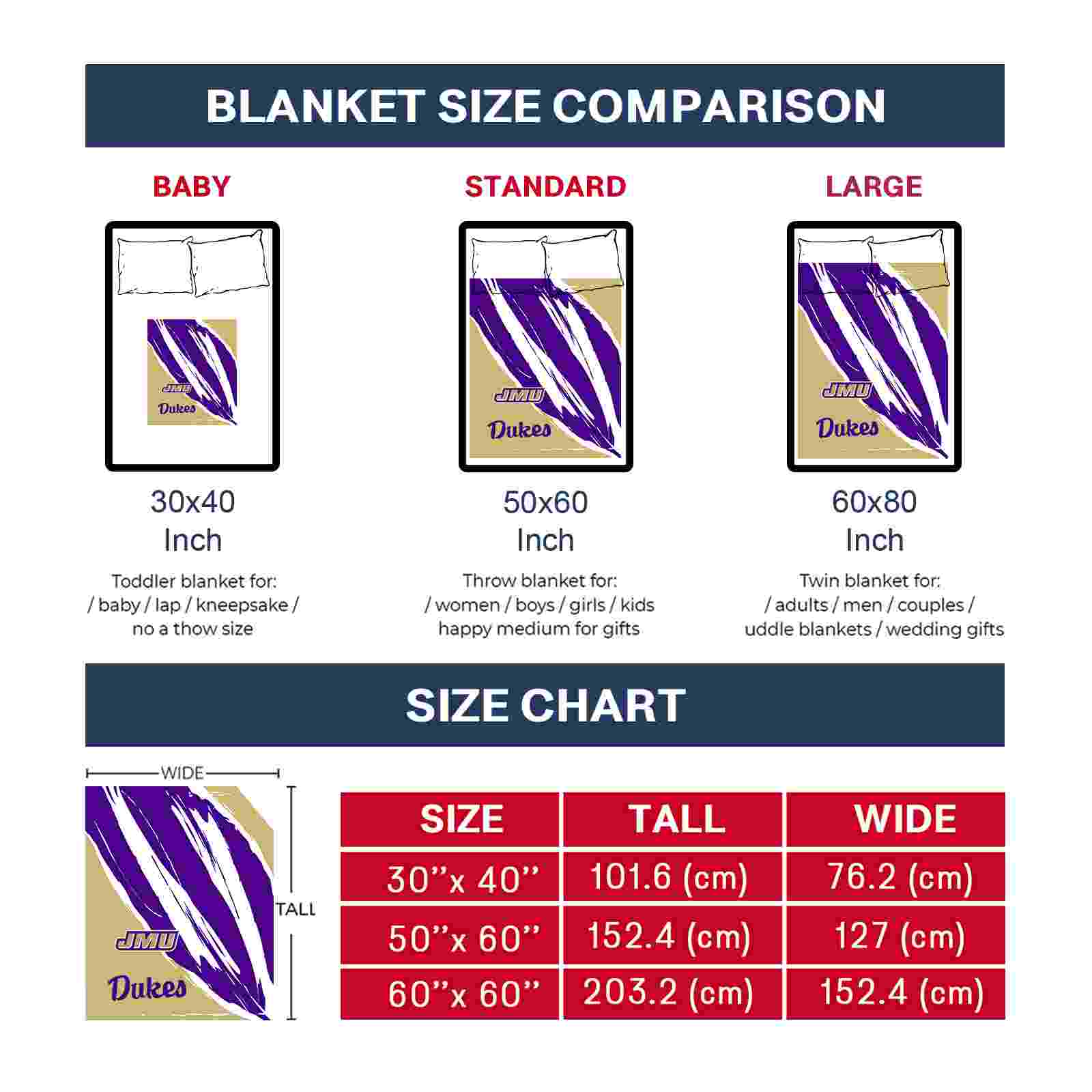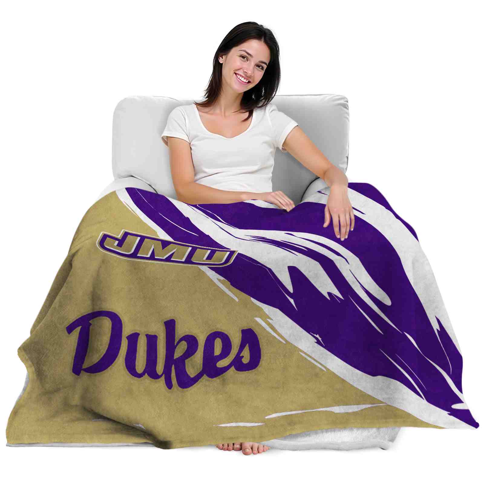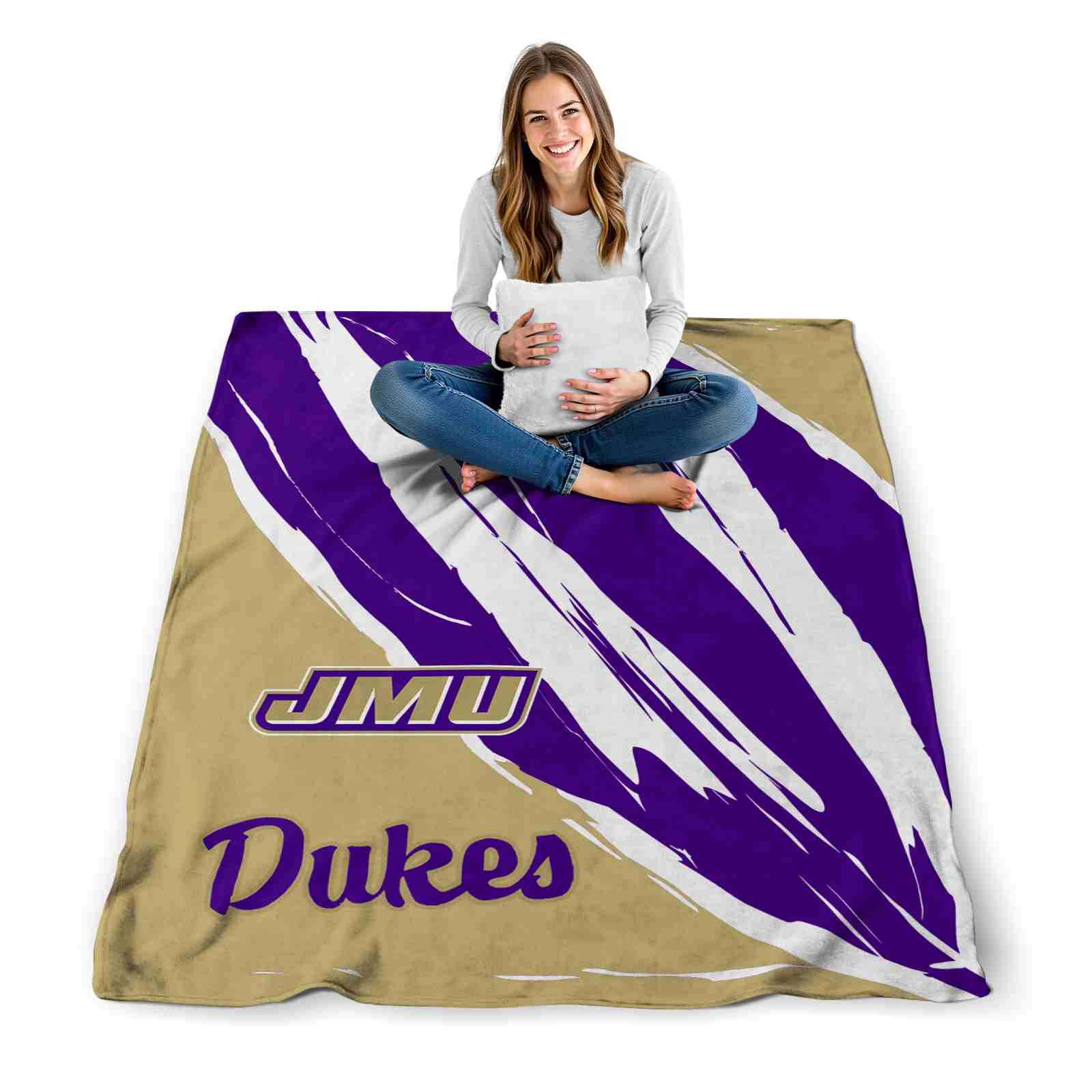 Without a doubt, the James Madison Dukes Brushstrokes Purple White Blanket from James Madison Dukes Blankets collection is offering true fans a chance to showcase passion in a cool way. Personalize it with your favorite team's logo or a meaningful name to make it uniquely yours. Isn't that great? The full-color print ensures vibrant, edge-to-edge designs, bringing your sports enthusiasm to life!