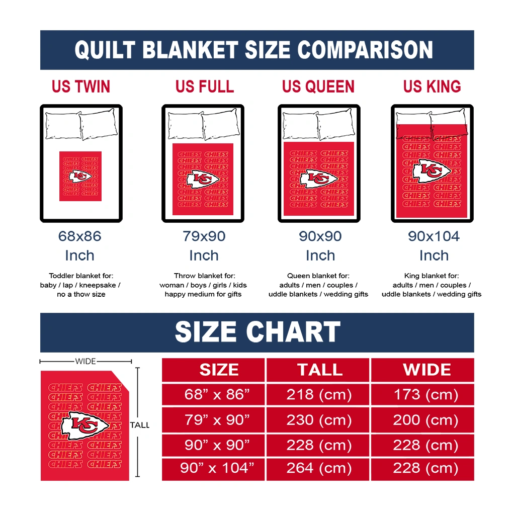 Wrap yourself in warmth and pride with the Kansas City Chiefs Bold Red Quilt Blanket from the Kansas City Chiefs Blankets collection at Yes That Blanket. Made from 100% premium quilting-weight polyester blended with a touch of microfiber, this quilt offers a smooth, soft finish you’ll love. Choose between two quilting styles—Stipple or Diagonal—and enjoy the comfort of a cotton-filled layer inside that adds extra coziness for every season. The border is available in classic black or white, giving your design a clean, timeless edge.